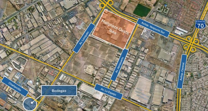 Con gran conectividad en eje Av. Lo Espejo con Lonquén. Con acceso a Autopistas Vespucio Sur y General Velasquez, además de Camino a Melipilla. A minutos de Mall Plaza Oeste (Ver imágen del mapa).