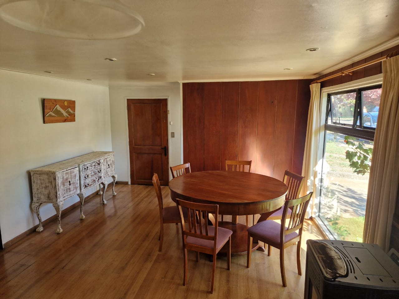 Amplio living comedor con calefacción estufa a pellet.
