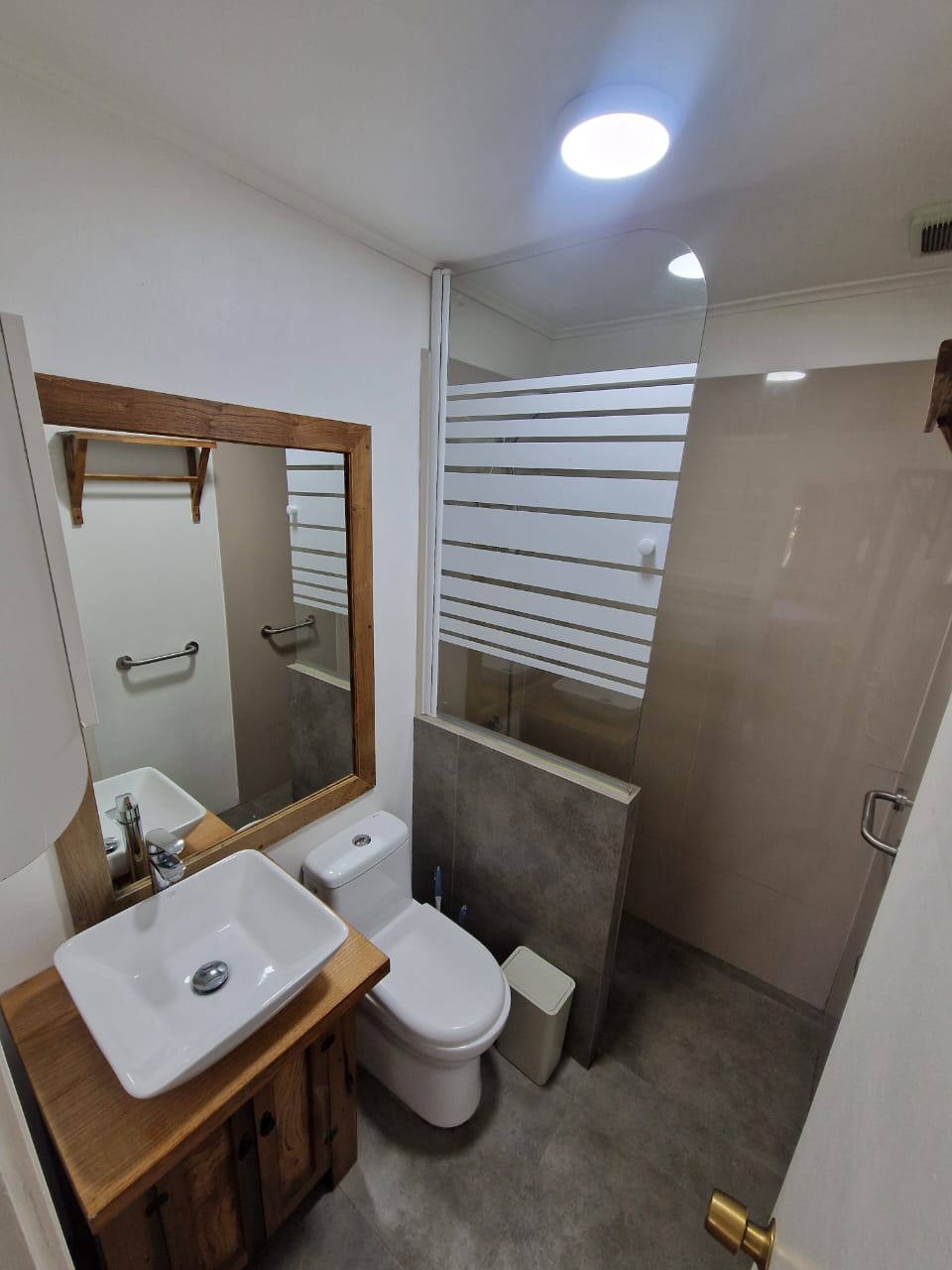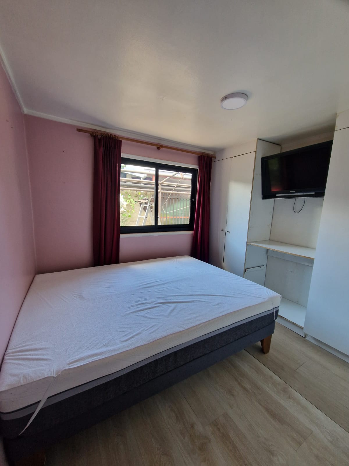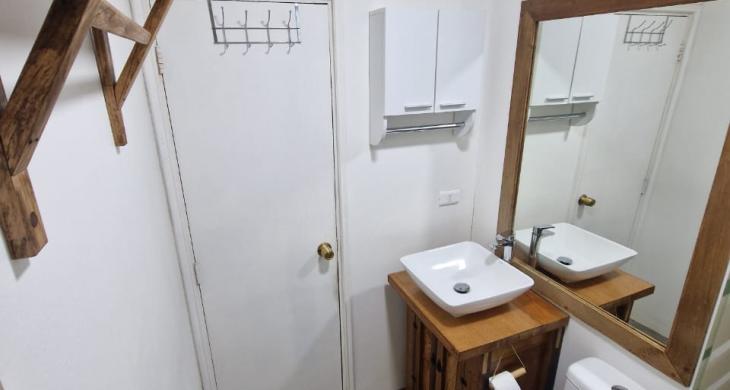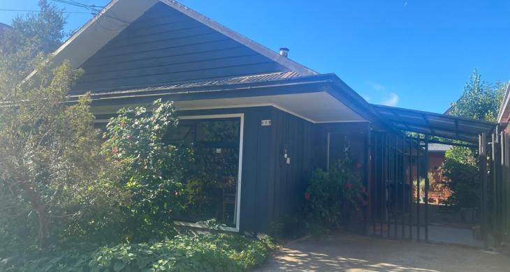 El patio se comparte con 3 cabañas independientes. El entorno es muy agradable, con plantas ornamentales, un terraza para compartir. El estacionamiento es afuera de la casa en la calle Cotapos.