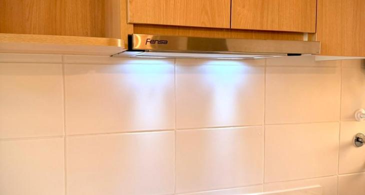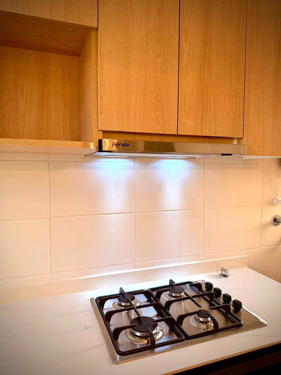 Cocina equipada con encimera, horno y campana