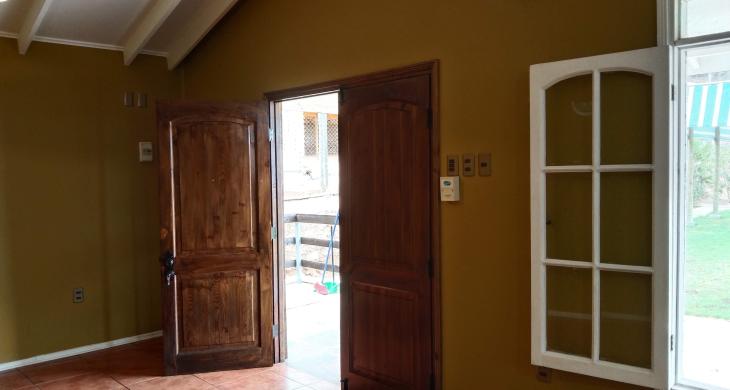 La propiedad es un terreno de aproximadamente 2.000 metros cuadrados con dos construcciones principales, una casa habitacional construída con material sólido, revestida con piso de cerámica y que consta de tres dormitorios medianos y un baño. Su sala de estar o living comedor es amplio y tiene la zona de la cocina integrada. Linda vista al patio y piscina. Destaca el corredor exterior que va por la mitad del perímetro de la casa y donde se llega a una amplia zona de lavandería.