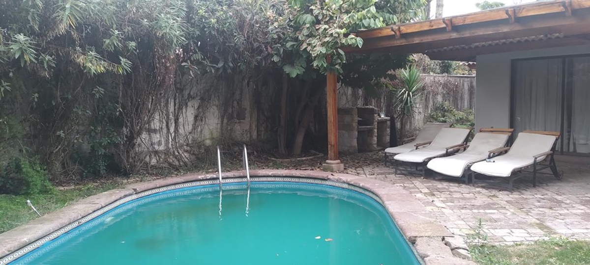 Piscina , quincho barbacoa. Estacionamiento para dos autos. Rejas cerco alarma.
