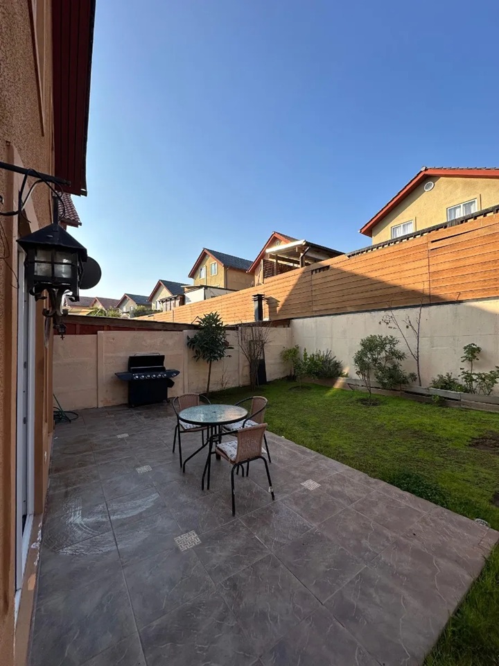 El patio es espacioso, permitiendo diversas opciones de esparcimiento al aire libre. La casa cuenta con dos estacionamientos y se encuentra protegida por cerramiento perimetral. Es una opción ideal para quienes buscan comodidad y conectividad en una zona residencial consolidada de Puente Alto.