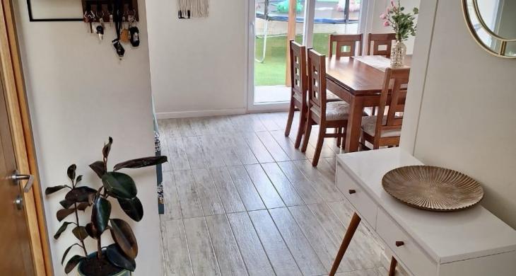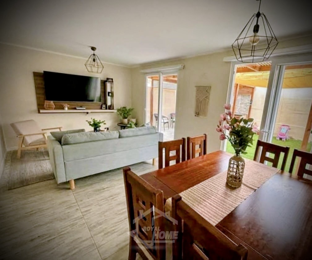En primer piso destaca su amplio y luminoso living-comedor, cocina independiente con comedor de diario y baño de visitas. Patio privado con quincho, pérgola y pasto sintético, perfecto para disfrutar en familia. Estacionamiento para 4 vehículos.