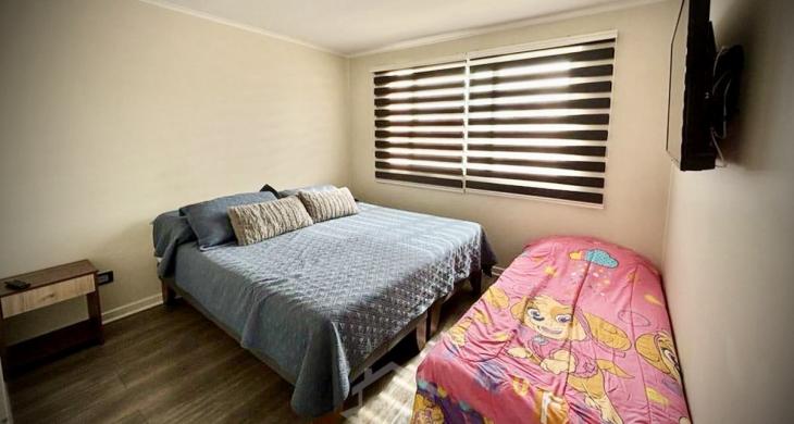 Condominio equipado con piscina, quincho, juegos infantiles, cerco eléctrico y seguridad permanente.