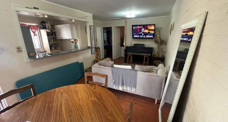 Excelente casa de un piso, con antejardin y patio, con entrada a sala living y comedor con amplio ventanal, cocina incorporada con ventana a la sala, con muebles, lavaplato y salida a patio lateral de la propiedad.