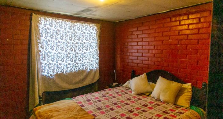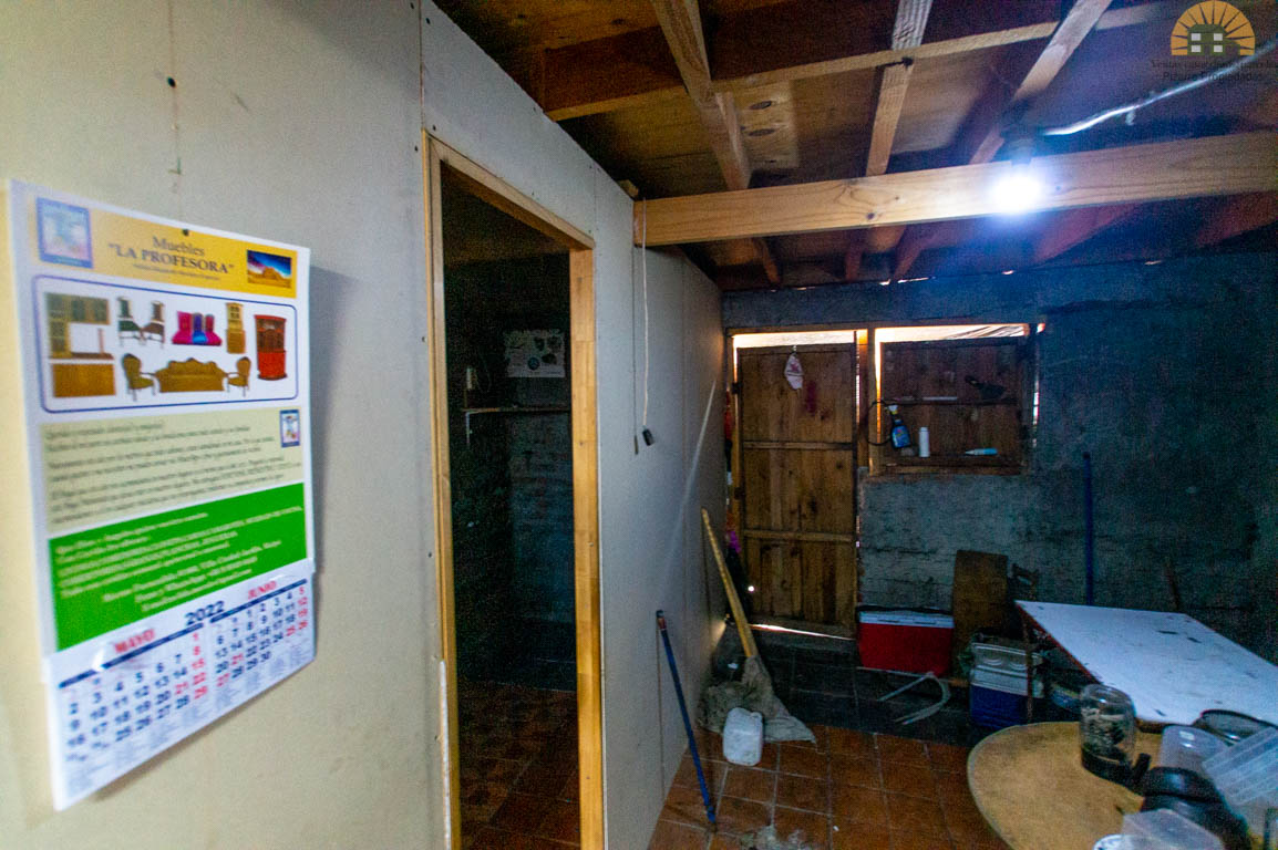 La casa tiene construido y regularizado 50 mts2 , aparte tiene unos 25 metros sólidos que no tienen regularización, cuenta con tres habitaciones de buen tamaño, baño, cocina, living comedor, caben dos autos pequeños adentro, o uno solo grande. Está dentro de Pasaje que se mantiene cerrado.