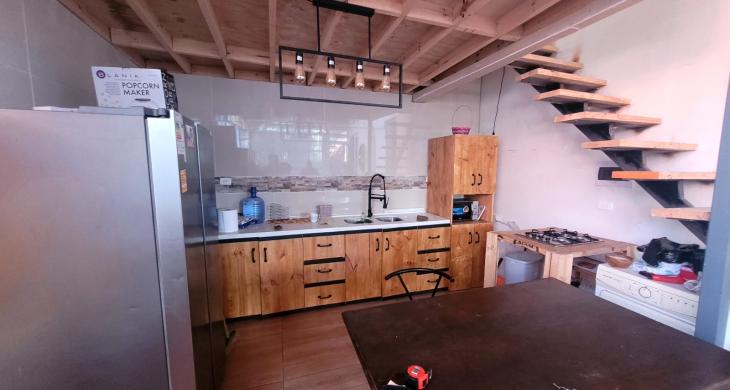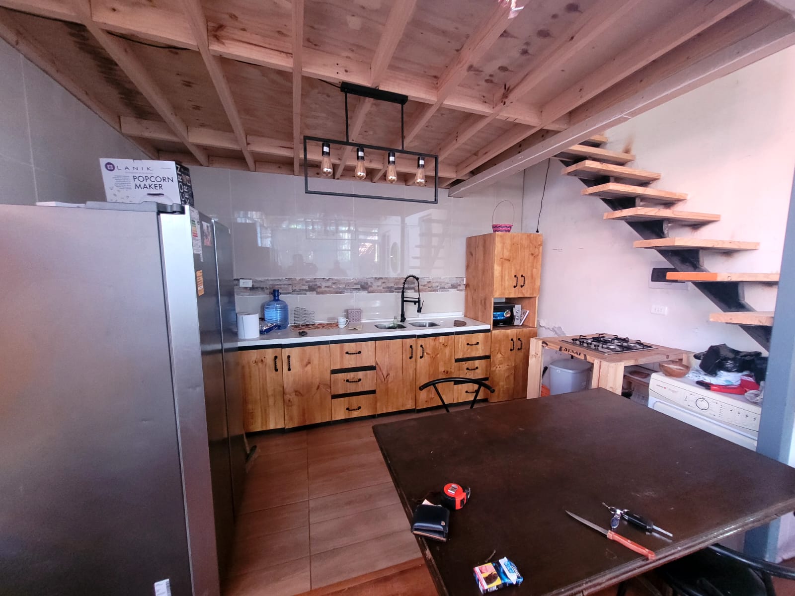 Cocina de concepto abierto equipada con muebles de madera.