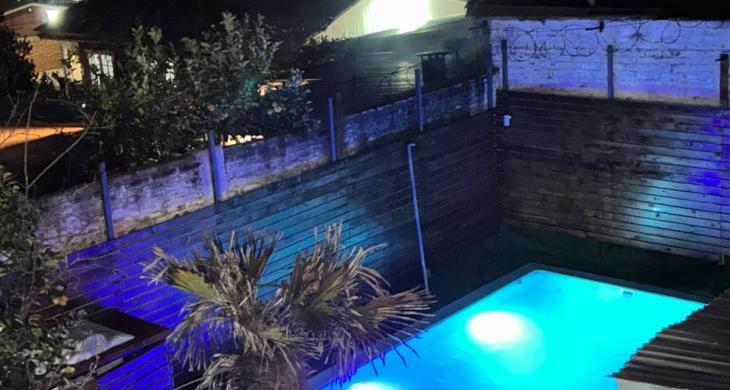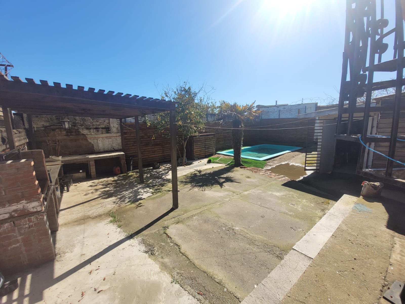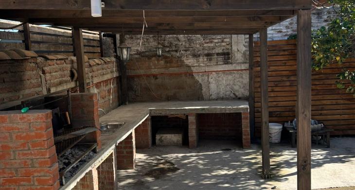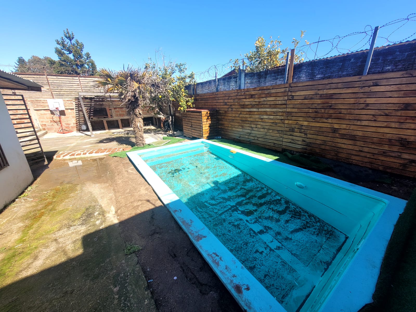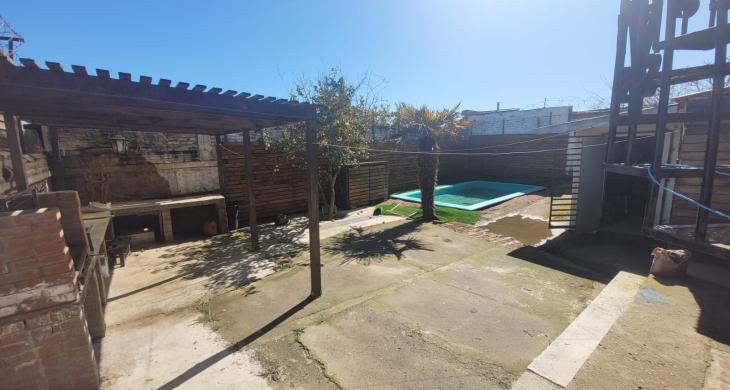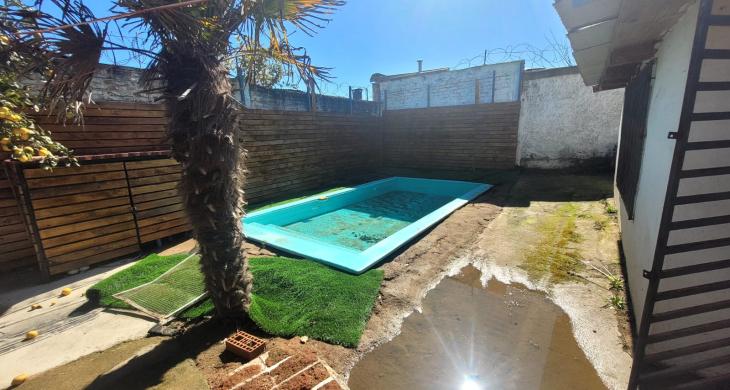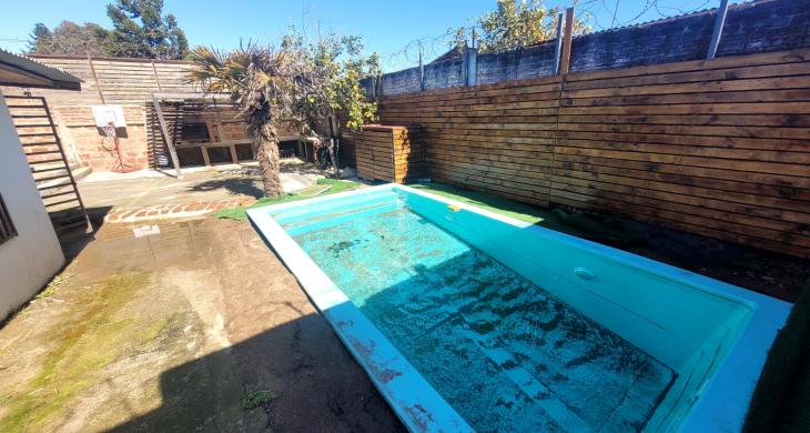 Piscina privada y sector de quincho techado.