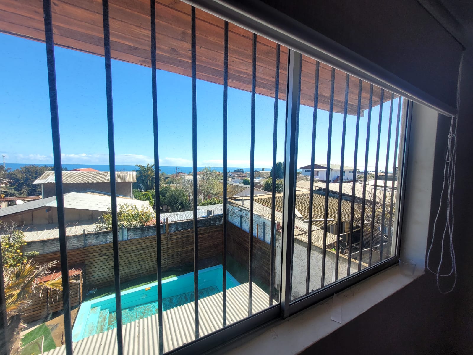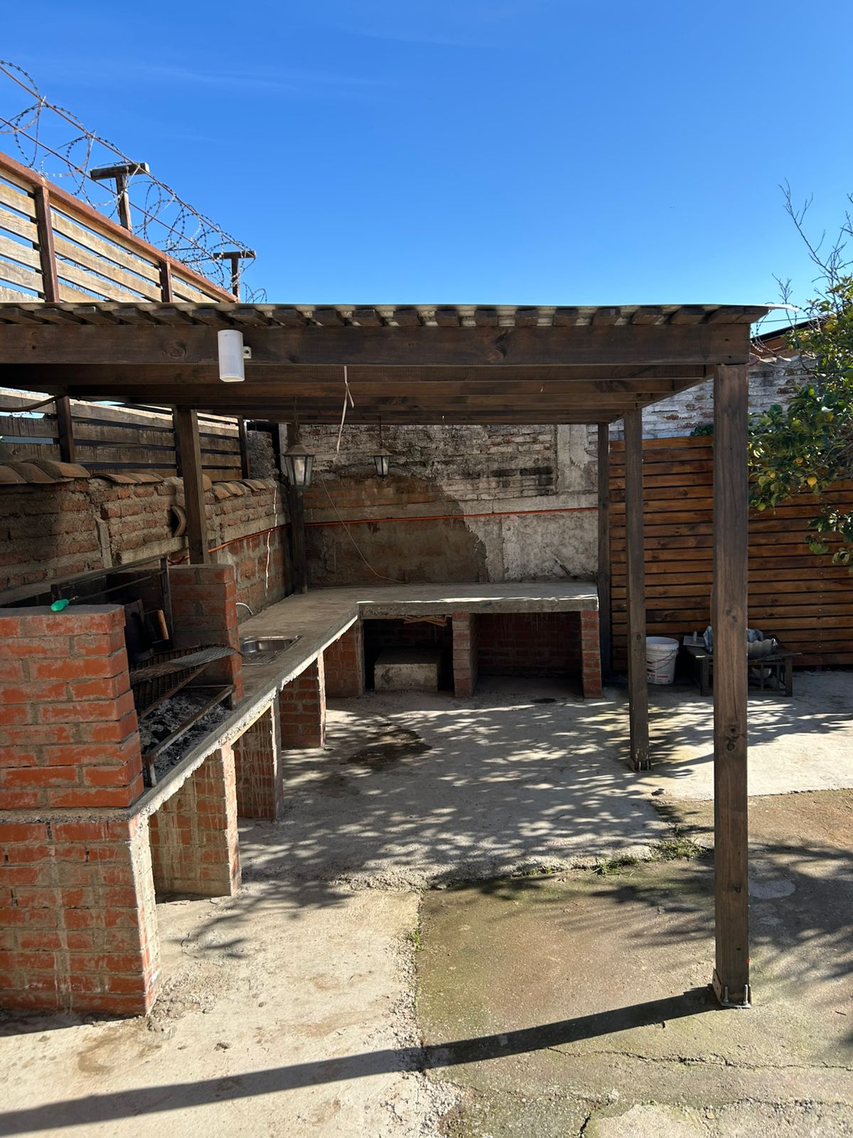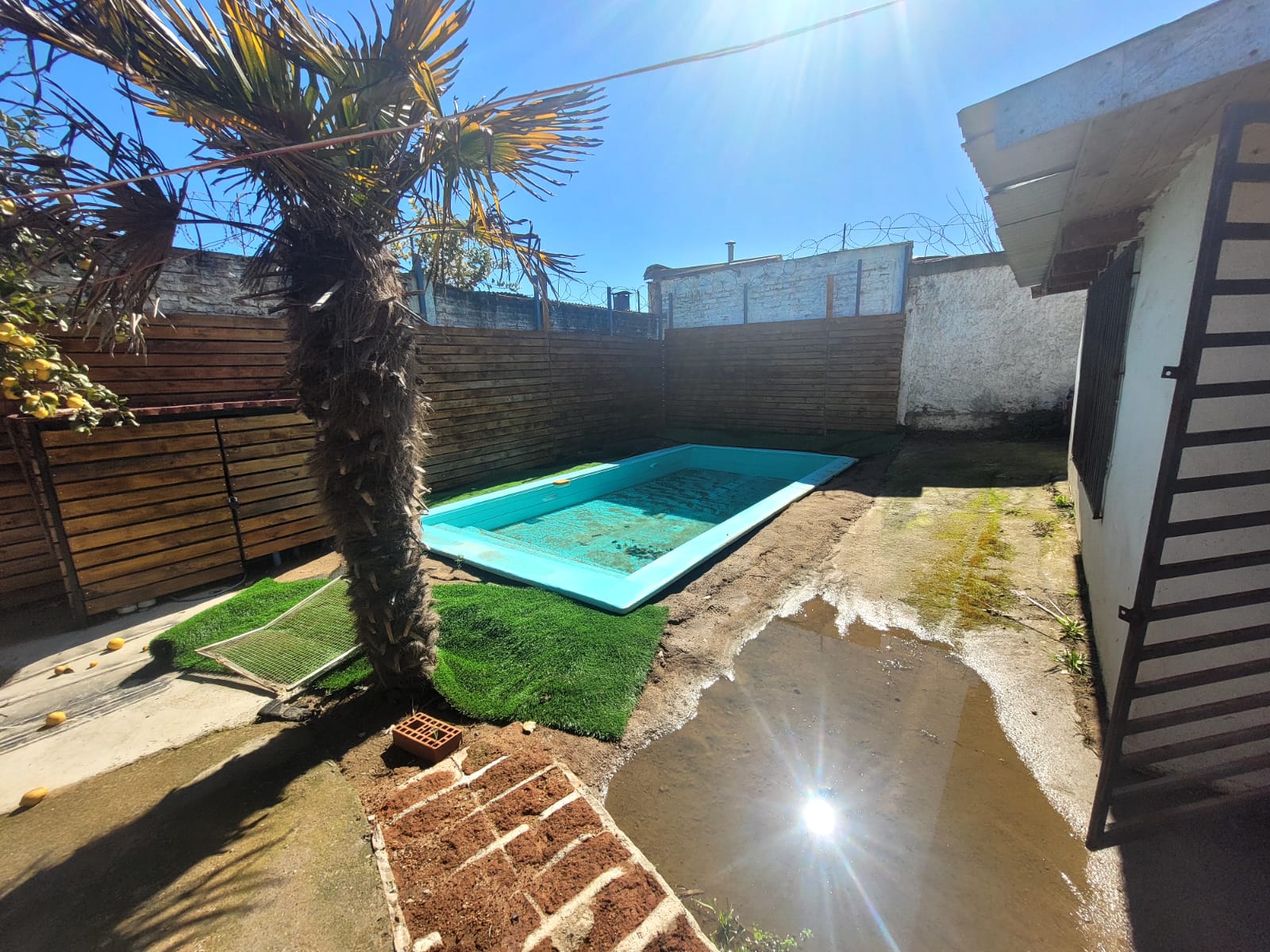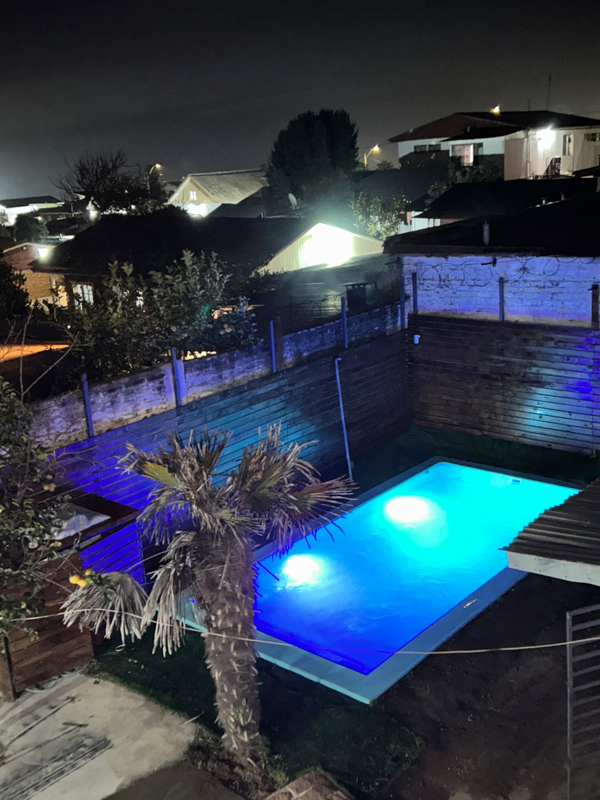 Piscina privada y sector de quincho techado.