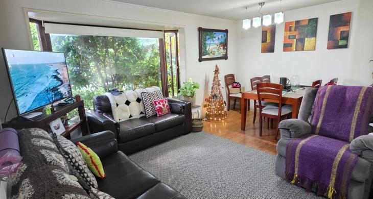 Condominio cuenta con conserjería 24/7, areas verdes formadas, piscina, juegos infantiles; cercano a colegios, farmacias, gimnasios, terminal de buses, súpermercados, locomoción colectiva. Lugar tranquilo y muy residencial.