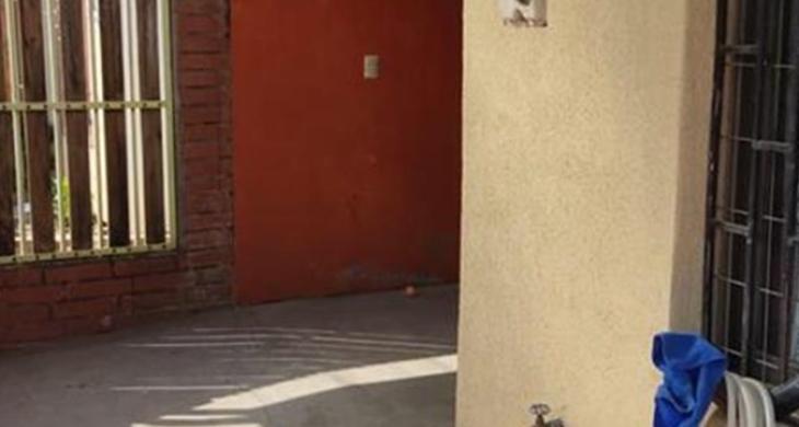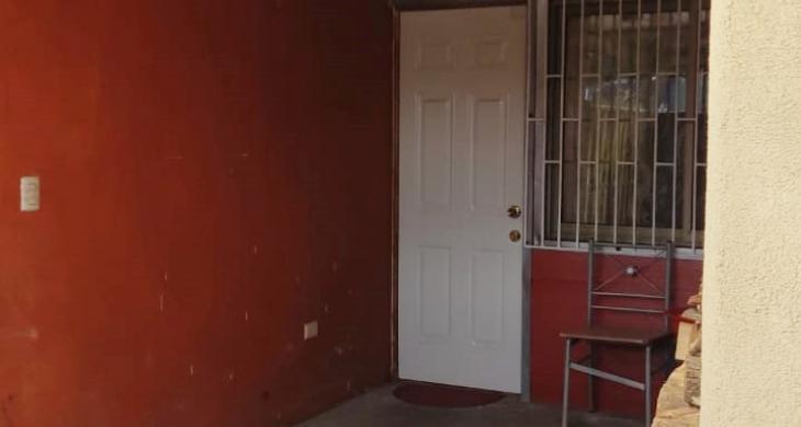 Antejardin techado, dos puertas de entrada a la casa.