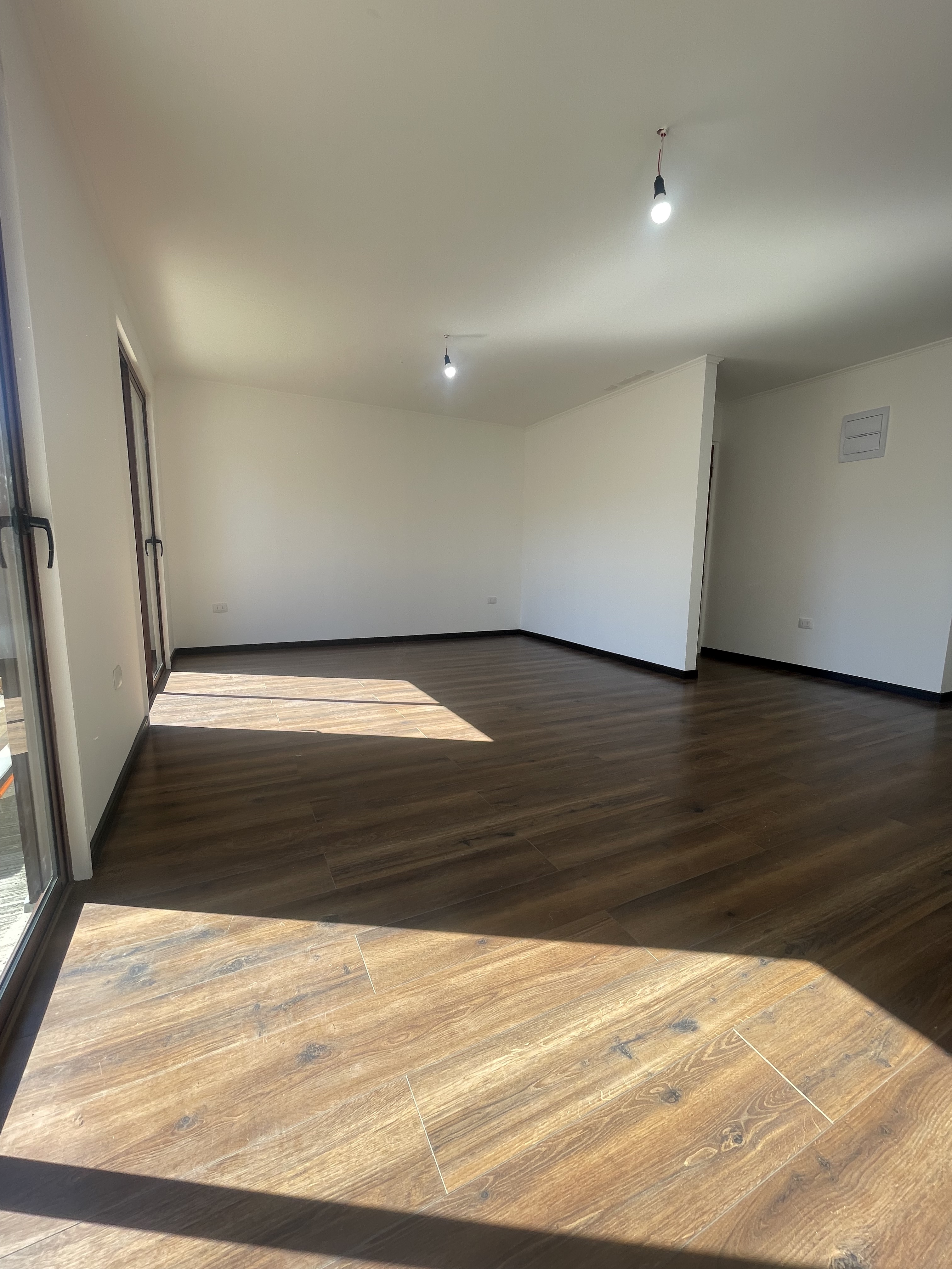 - Amplio Living Comedor con piso flotante y dos amplios ventanales en termopanel con salida a terraza y patio