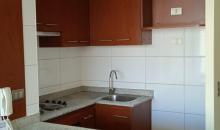 Consta de living comedor con salida a pequeña terraza, cocina americana amoblada y equipada con encimera a gas para cuatro platos y horno eléctrico.