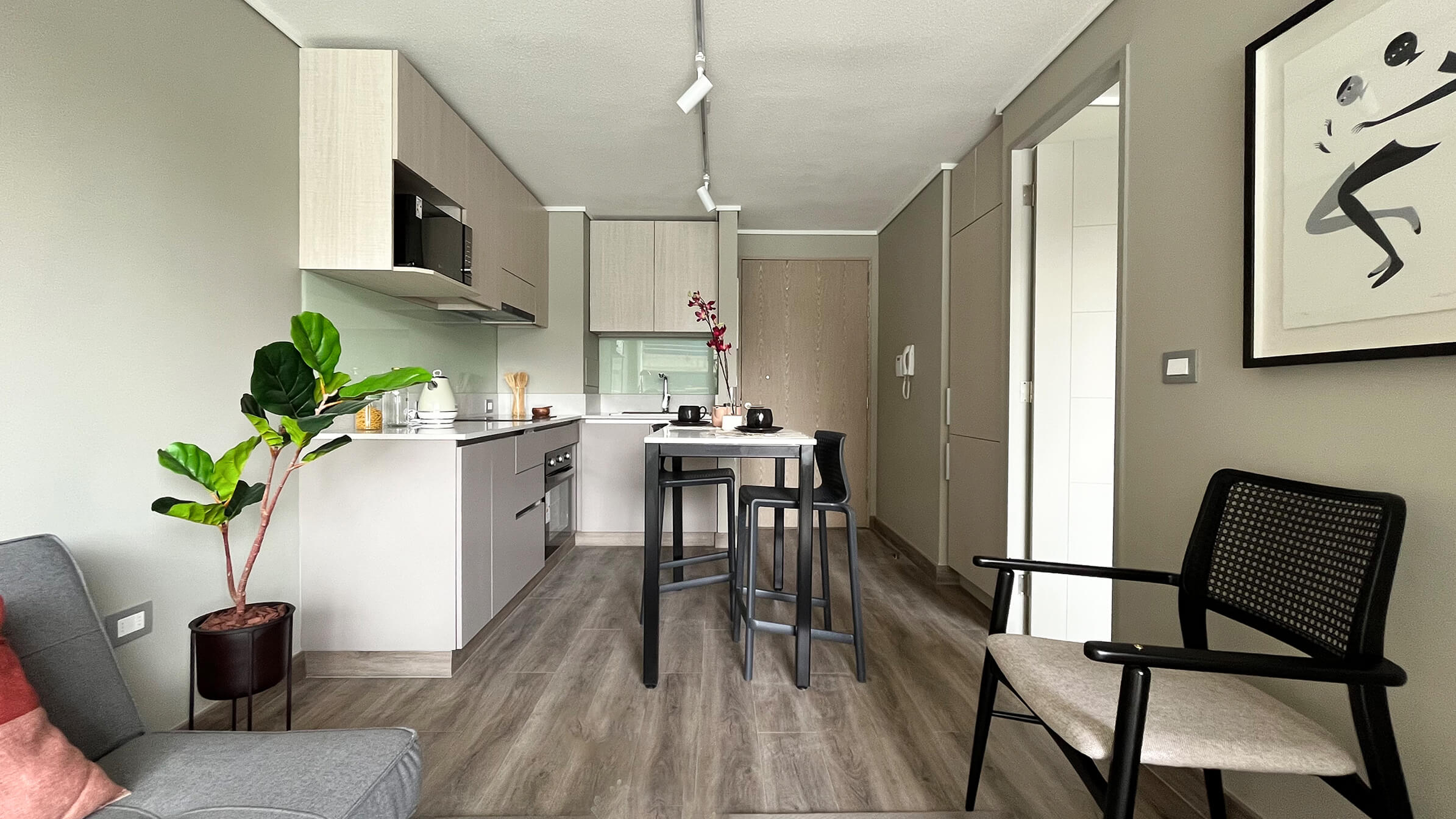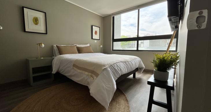 Esta propiedad, ideal para profesionales o parejas que buscan funcionalidad y estilo, cuenta con una distribución inteligente que maximiza cada metro cuadrado. La unidad dispone de un dormitorio amplio y un baño completo con terminaciones de calidad, ofreciendo un ambiente acogedor y privado. El diseño interior permite una fluidez natural entre los espacios, asegurando una habitabilidad óptima y un aprovechamiento superior de la luz, lo que convierte a este departamento en un refugio perfecto dentro de la ciudad.