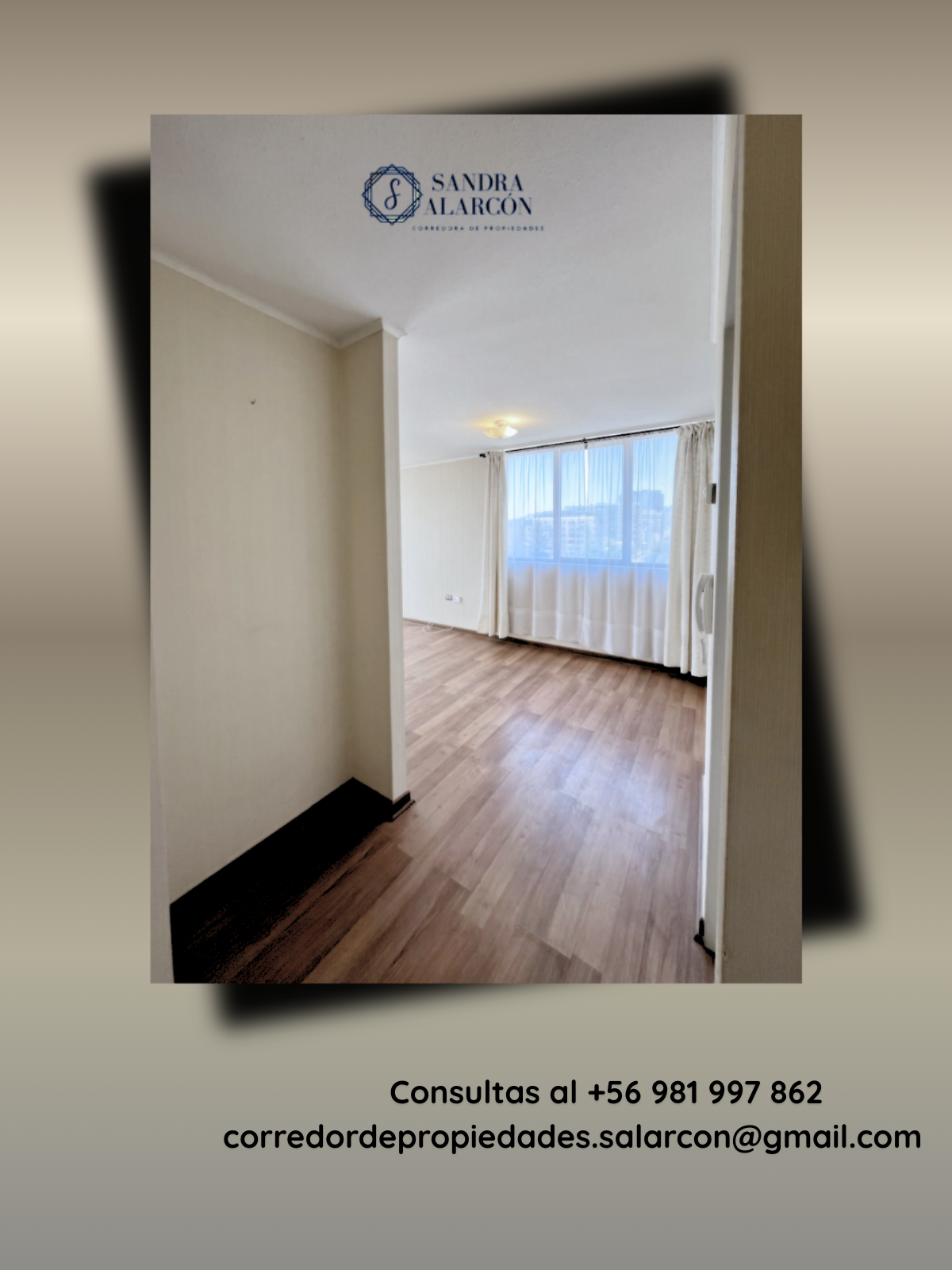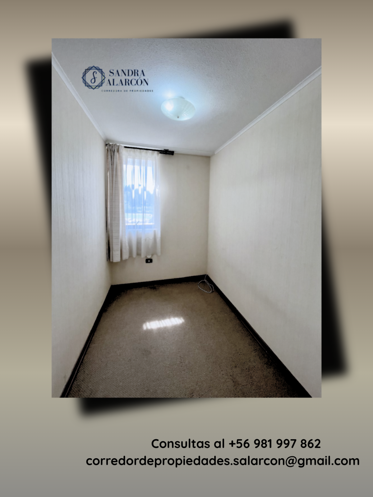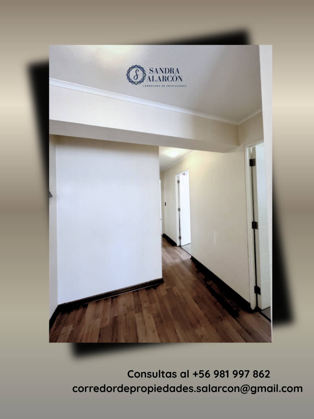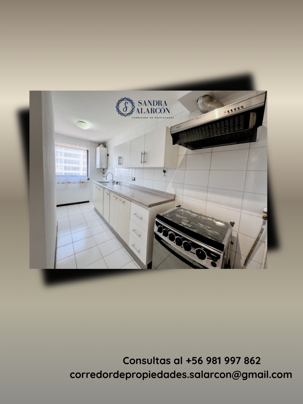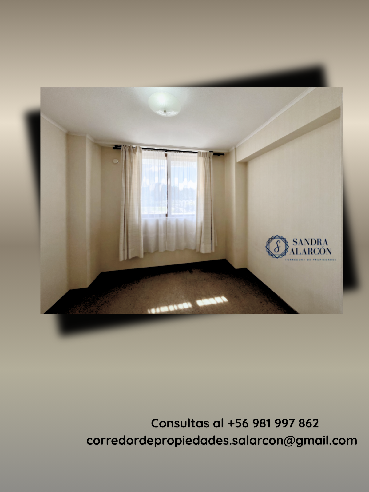 Mayor información comunicarse con Sandra Alarcón, corredor de propiedades al +56 981997862