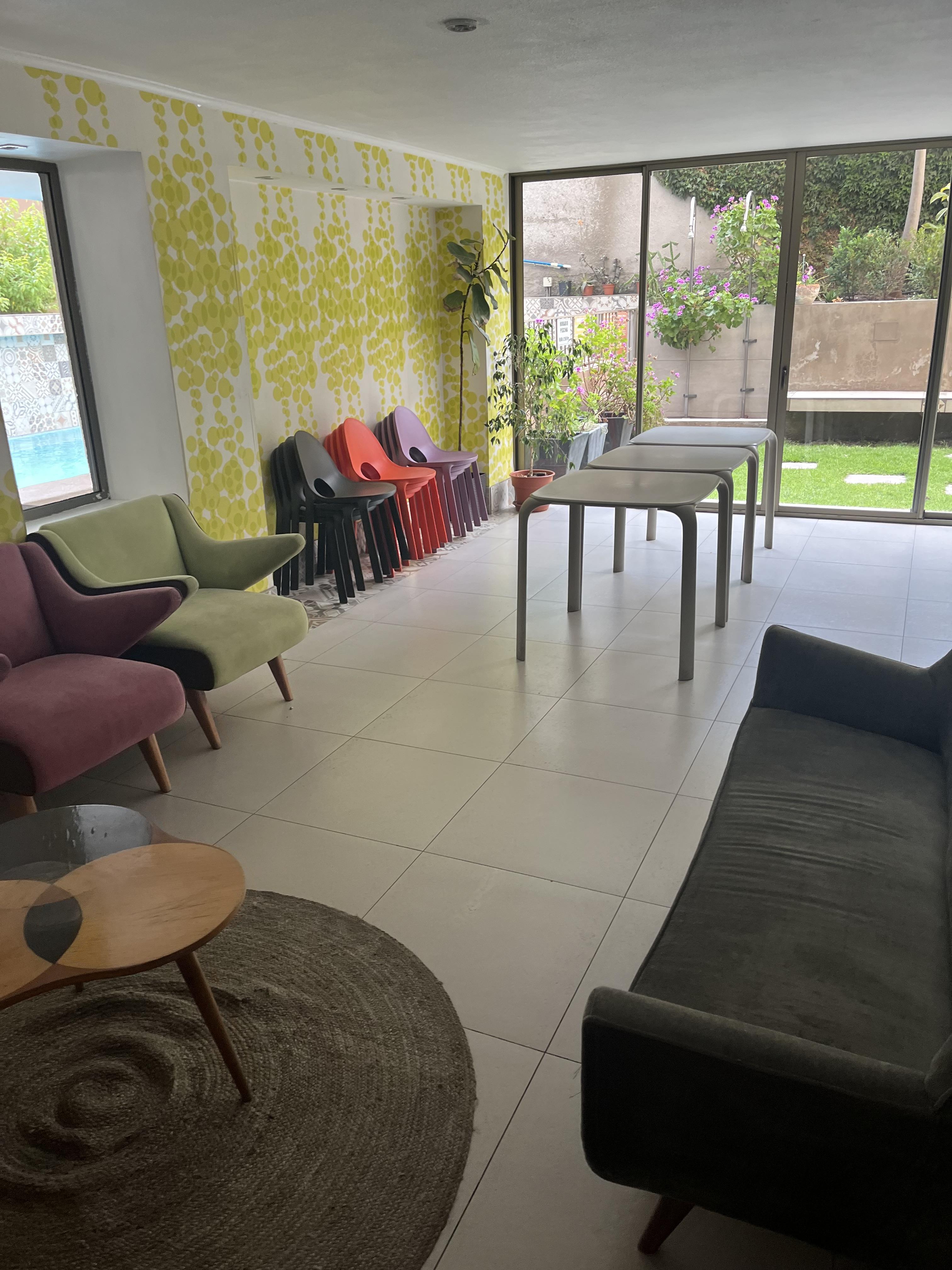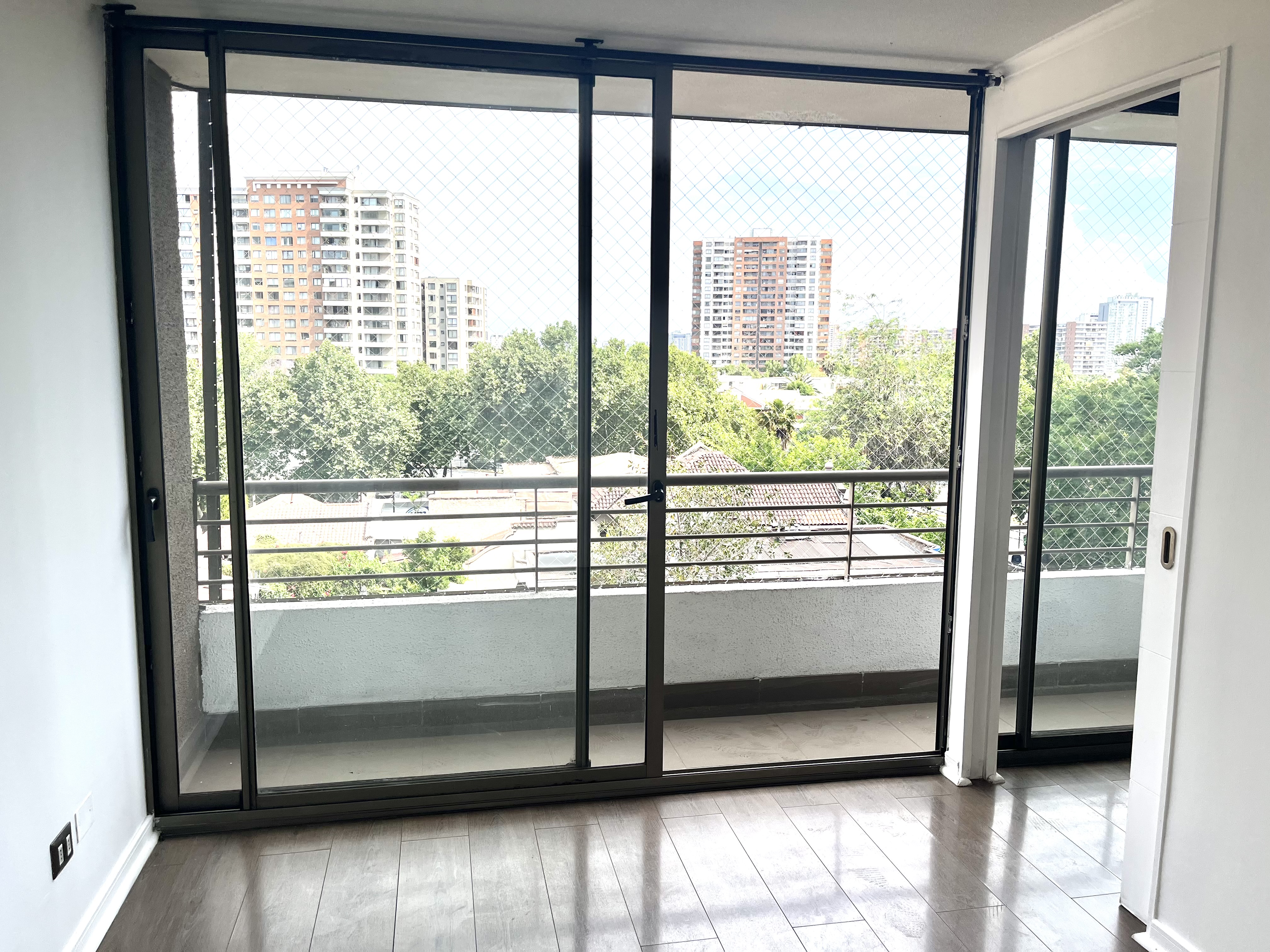 Edificio seguro con conserjería 24 horas, cámaras de seguridad, ascensores, áreas verdes, bicicletero, estacionamiento de visitas, piscina y salón de eventos.