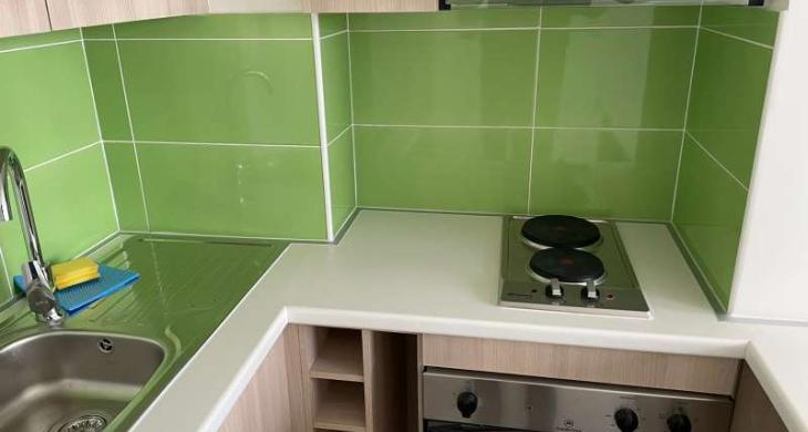 Cocina americana con mesón, encimera, horno y campana (full eléctrica)