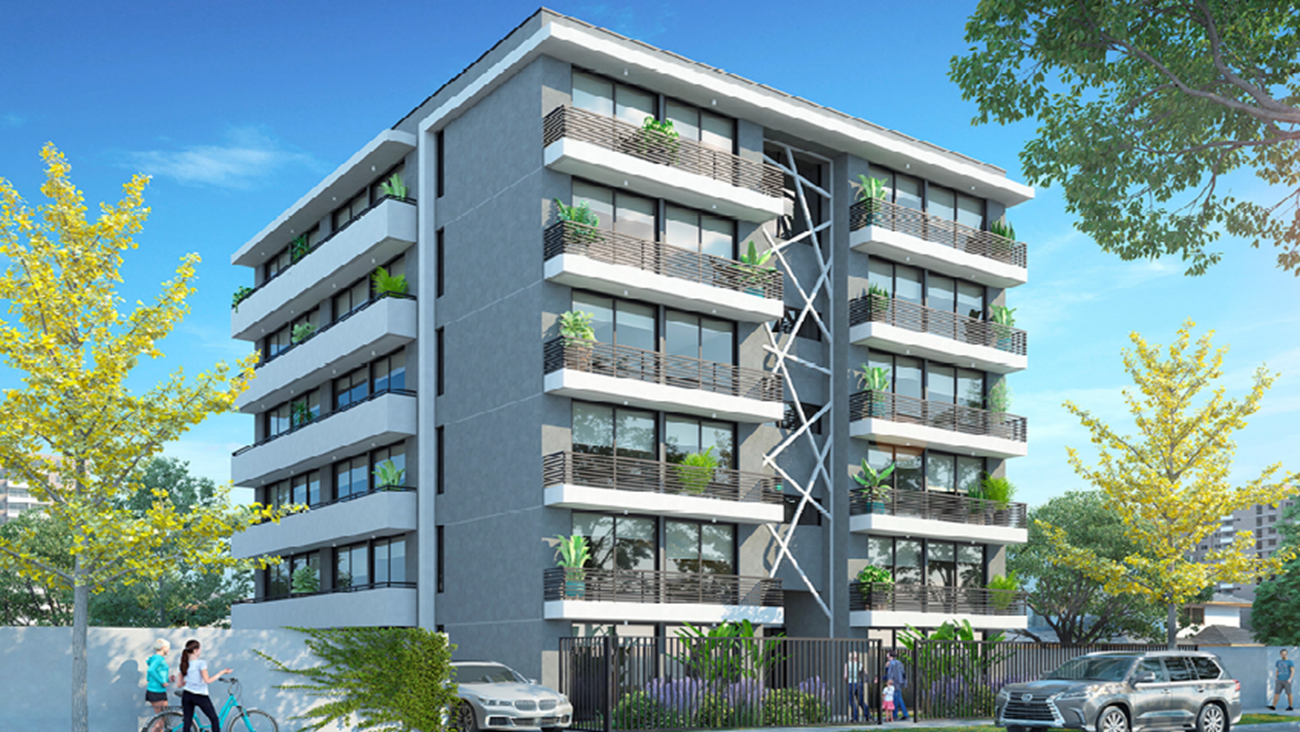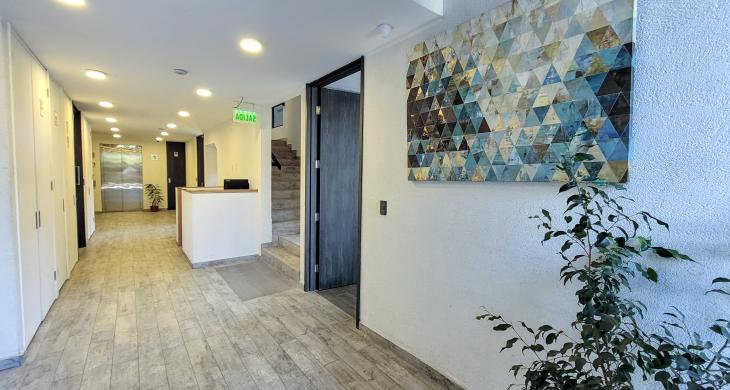 Edificio de solo 34 departamentos, con control de acceso digital.