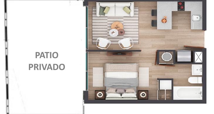 Departamento en primer piso con patio privado.