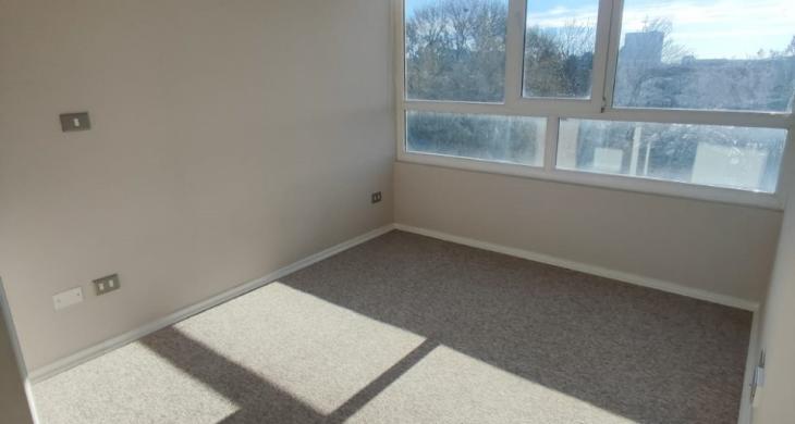 - Piso alfombrado y cerámico, Ventanas de termopanel