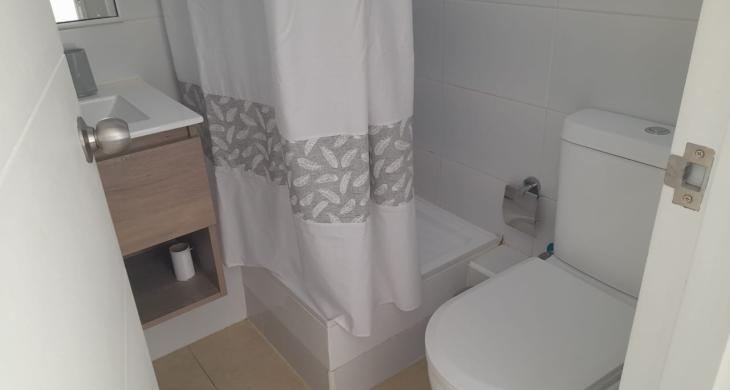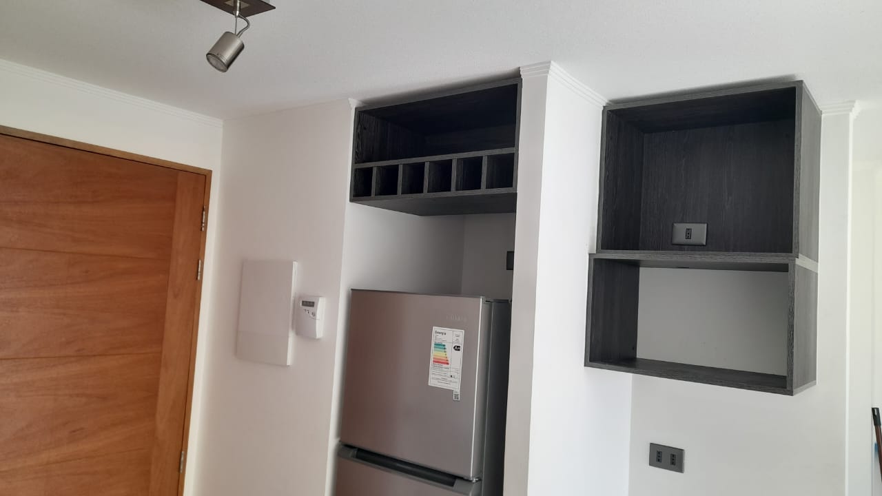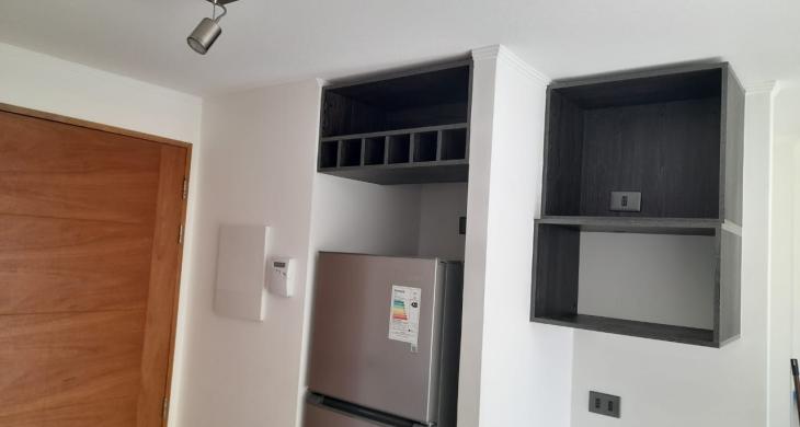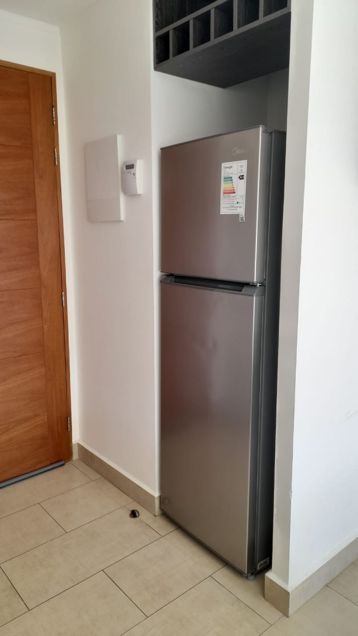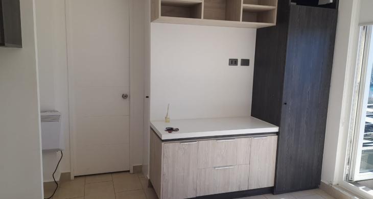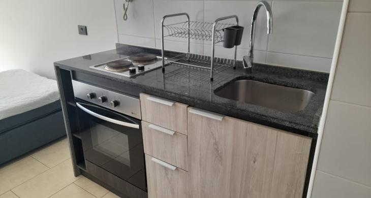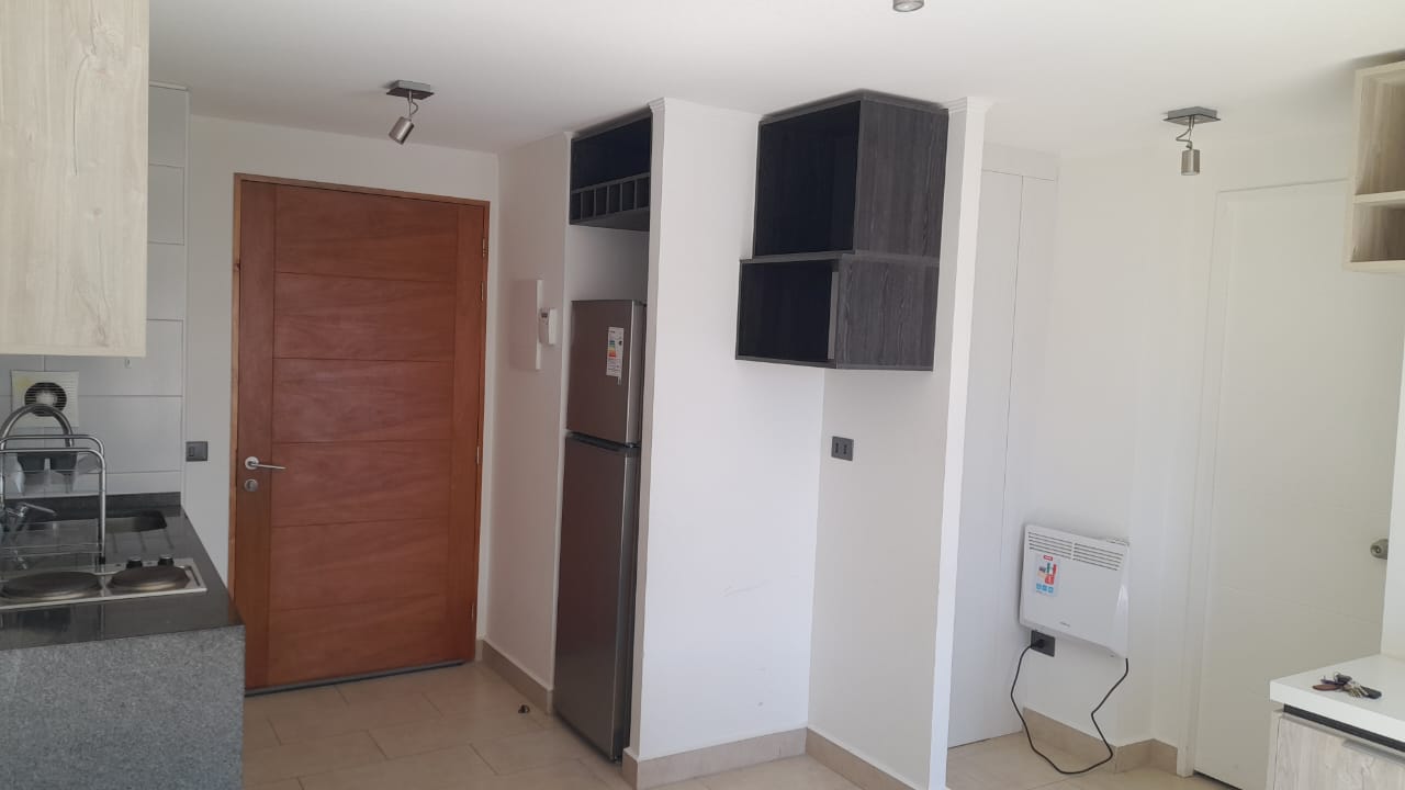 Departamento Studio, equipado con encimera, horno eléctrico, termo eléctrico, refrigerador, cama, lámparas, roller.