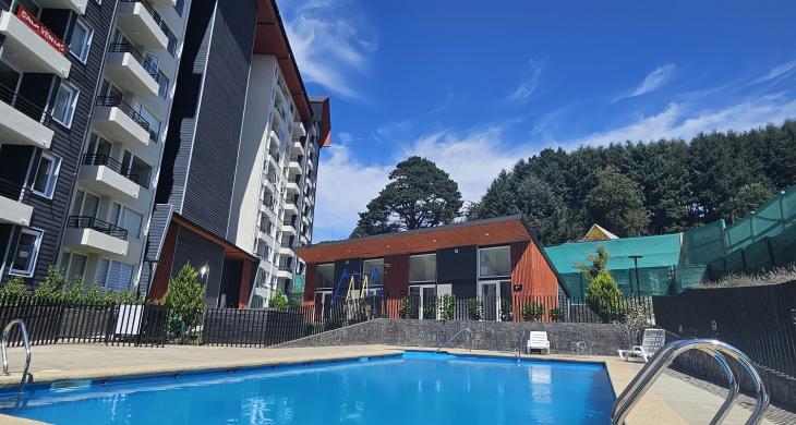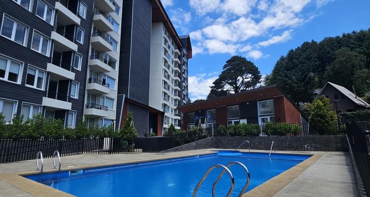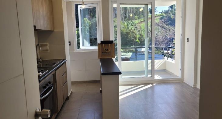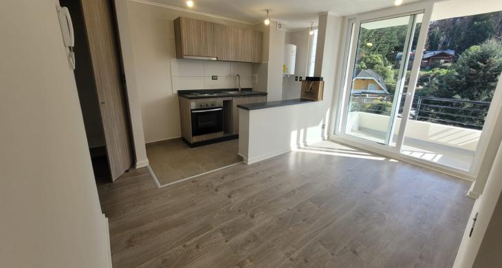 Valmanic Propiedades arrienda acogedor y cómodo departamento en sexto piso, con vista despejada al bosque. Ubicado en un sector privilegiado, a pasos del centro de Villarrica y cercano a supermercados, servicios y transporte.
