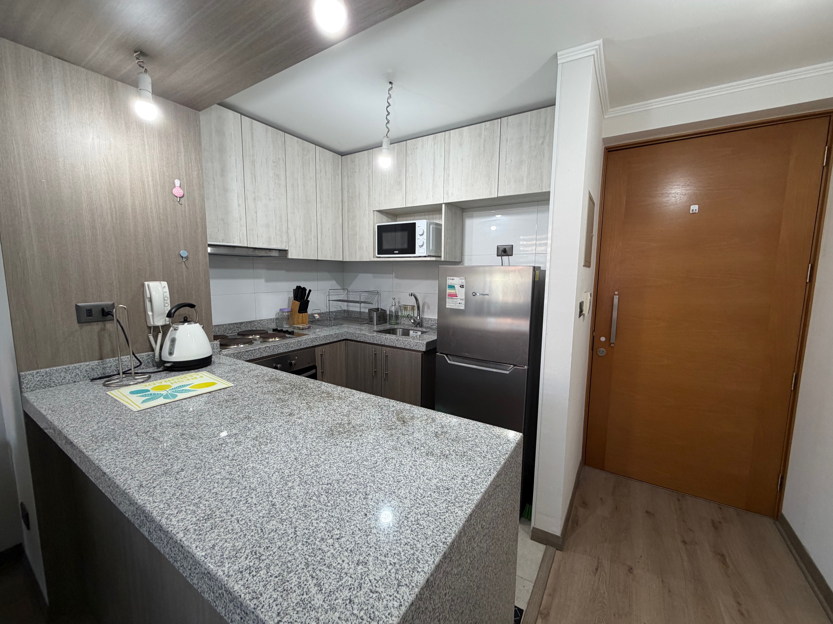 Entre sus características diferenciadoras, destaca que el departamento se entrega completamente amoblado, con un estilo sobrio y profesional que se adapta a diversos perfiles de arrendatarios. La cocina se encuentra equipada, permitiendo que la mudanza sea un proceso ágil, sin preocupaciones y de disponibilidad inmediata. Además, la seguridad es una prioridad en este conjunto habitacional, ofreciendo vigilancia controlada y conserjería las 24 horas del día, lo que garantiza un entorno tranquilo, profesional y resguardado para usted y sus pertenencias en todo momento.