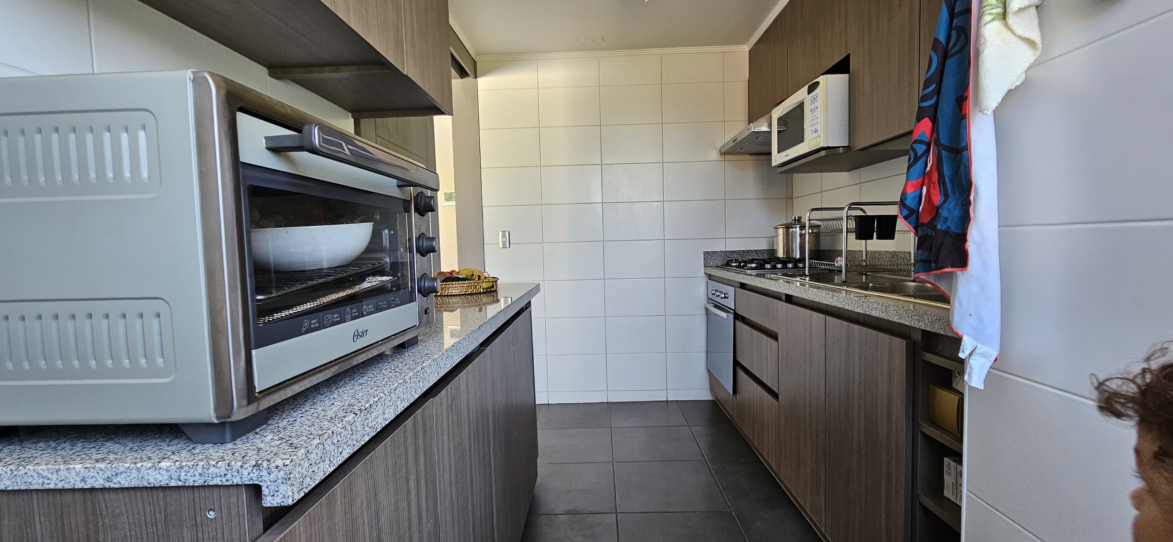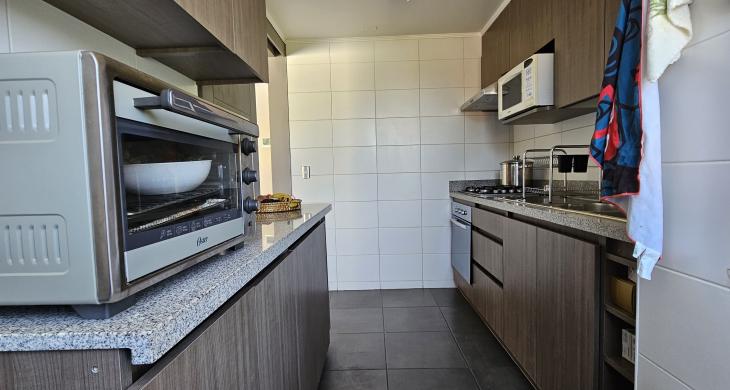 Cocina amueblada, encimera, horno y campana