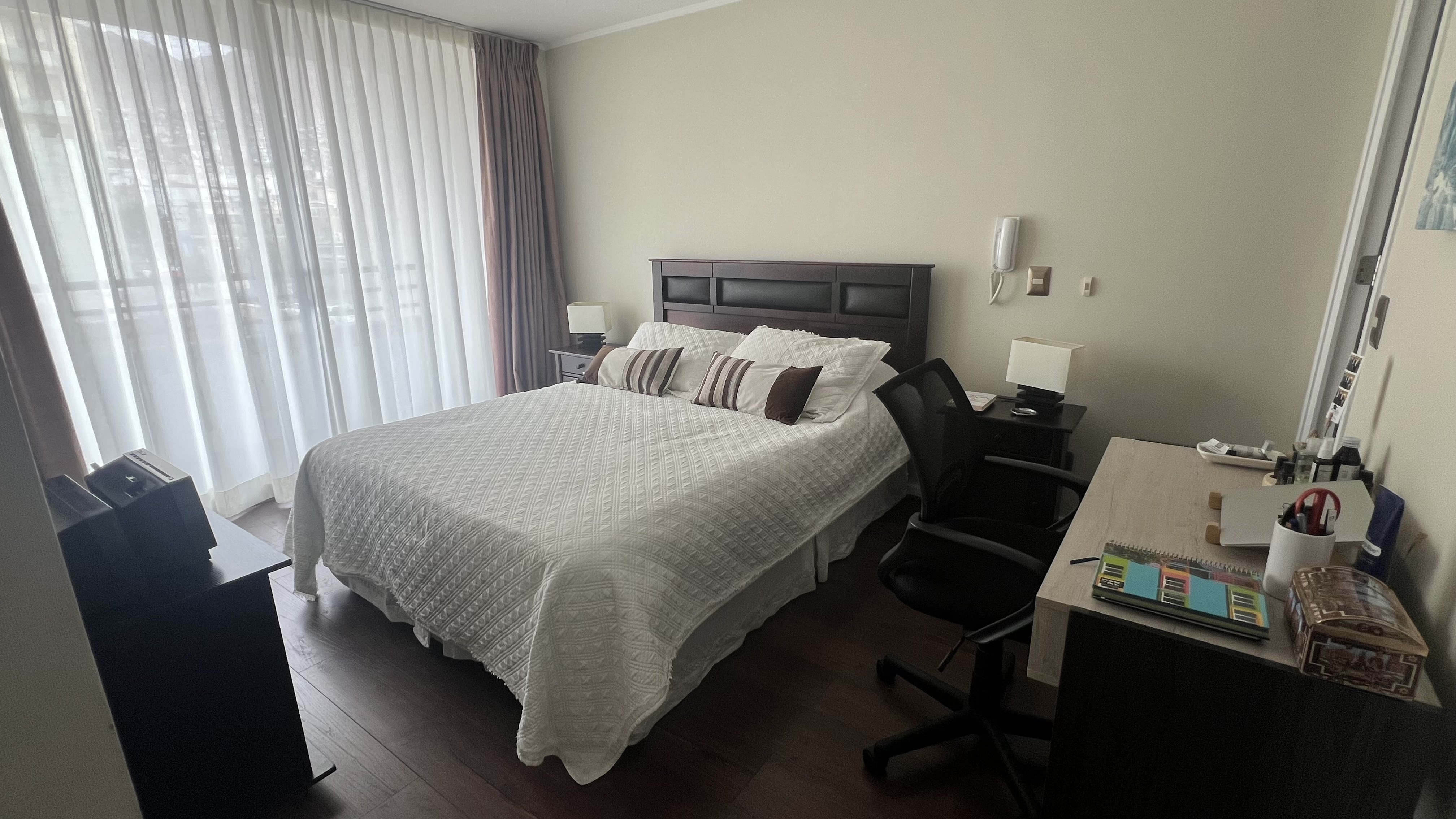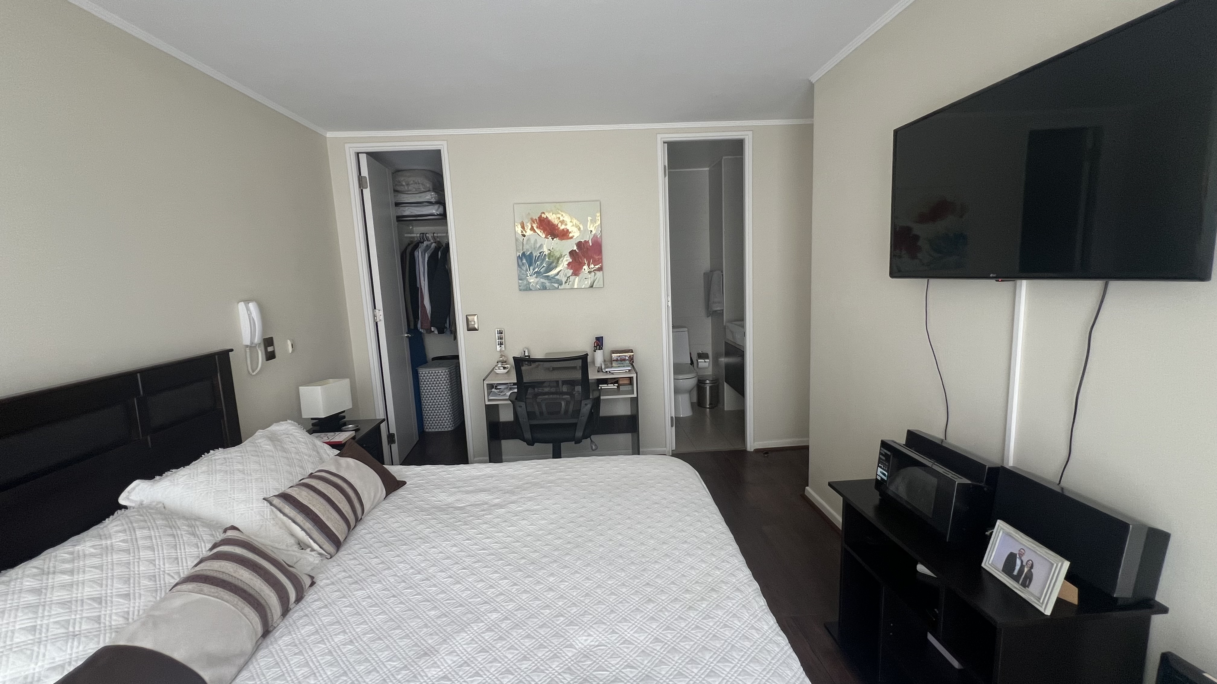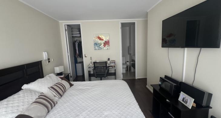 - Dormitorio Principal en suite, Walkig Closet, Cama Matrimonial, Escritorio, Televisor.