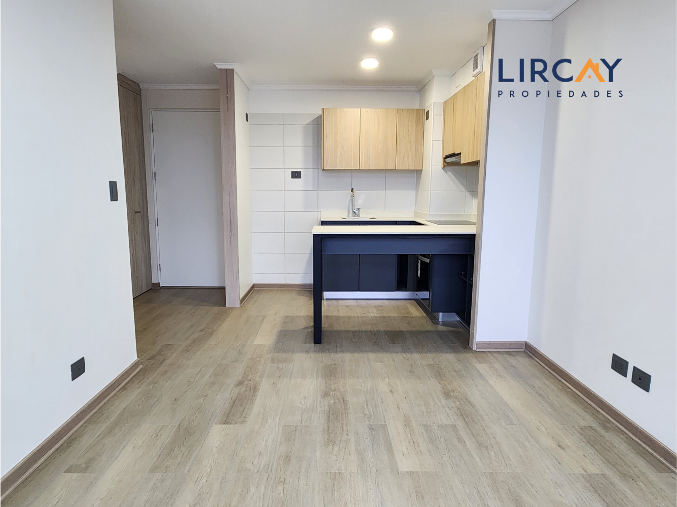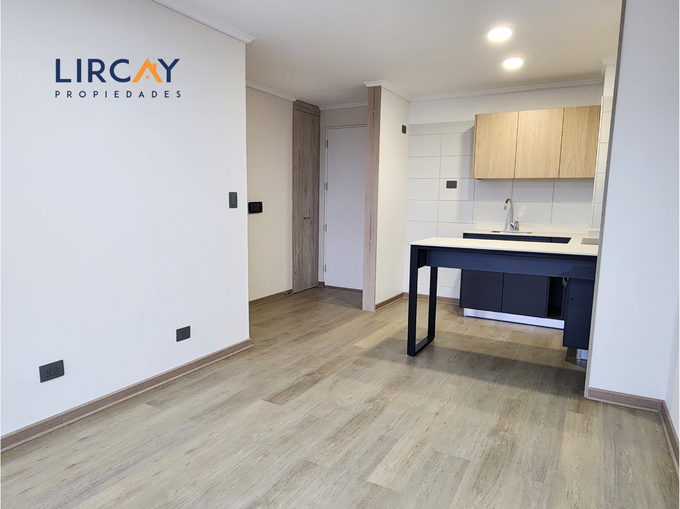 Nota: Fotos referenciales. Depto en arriendo presenta muebles y papel decomural color beige.