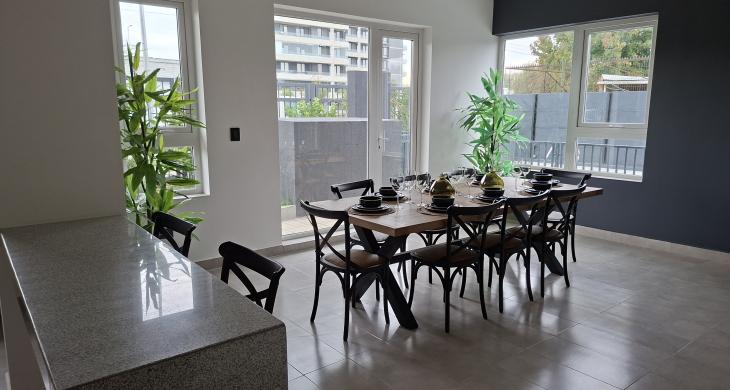 Este exclusivo Condominio cuenta con Cafetería, sala de reuniones con comedor, televisor para poder contar con reuniones de negocios, gimnasio y piscina. Conserjeria 14/7.