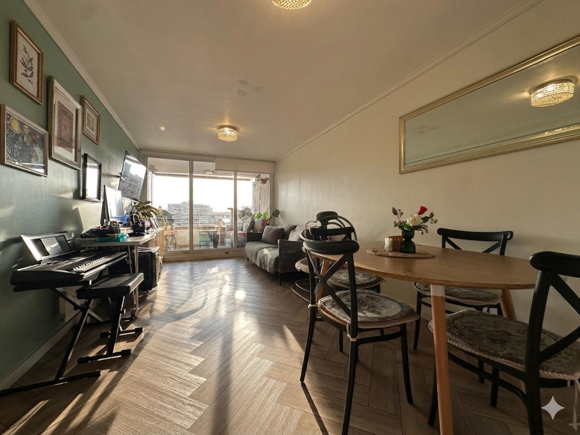 Amplio living comedor con salida a terraza