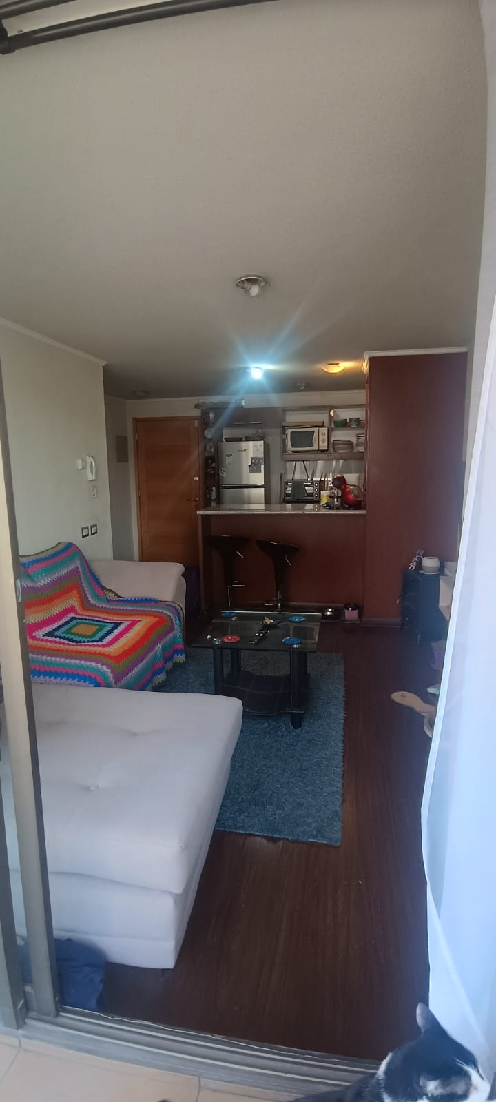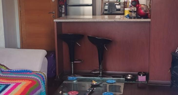 El departamento se encuentra en excelente estado y cuenta con terminaciones de calidad. Cuenta con dormitorio matrimonial y uno secundario, con piso alfombrado. Cuenta con un baño completo. Living comedor integrado con piso flotante, salida a la terraza. Cocina concepto abierto, amoblada y equipada con encimera a gas, horno y campana. No cuenta con conexión a lavadora. Piso 8. Orientación sur.