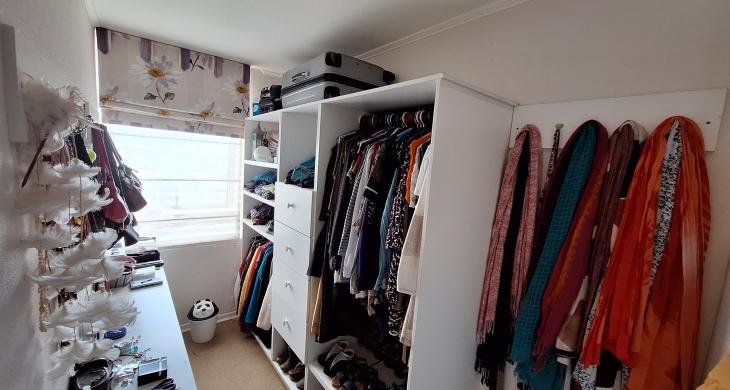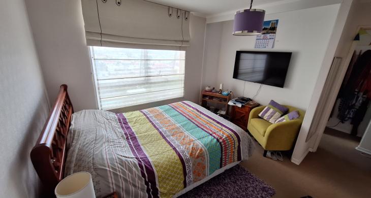 - 1 Dormitorio muy amplio con walk in Closet (que era un tercer dormitorio que se unió y se hizo closet), este dormitorio es en suite. (Alfombrado)