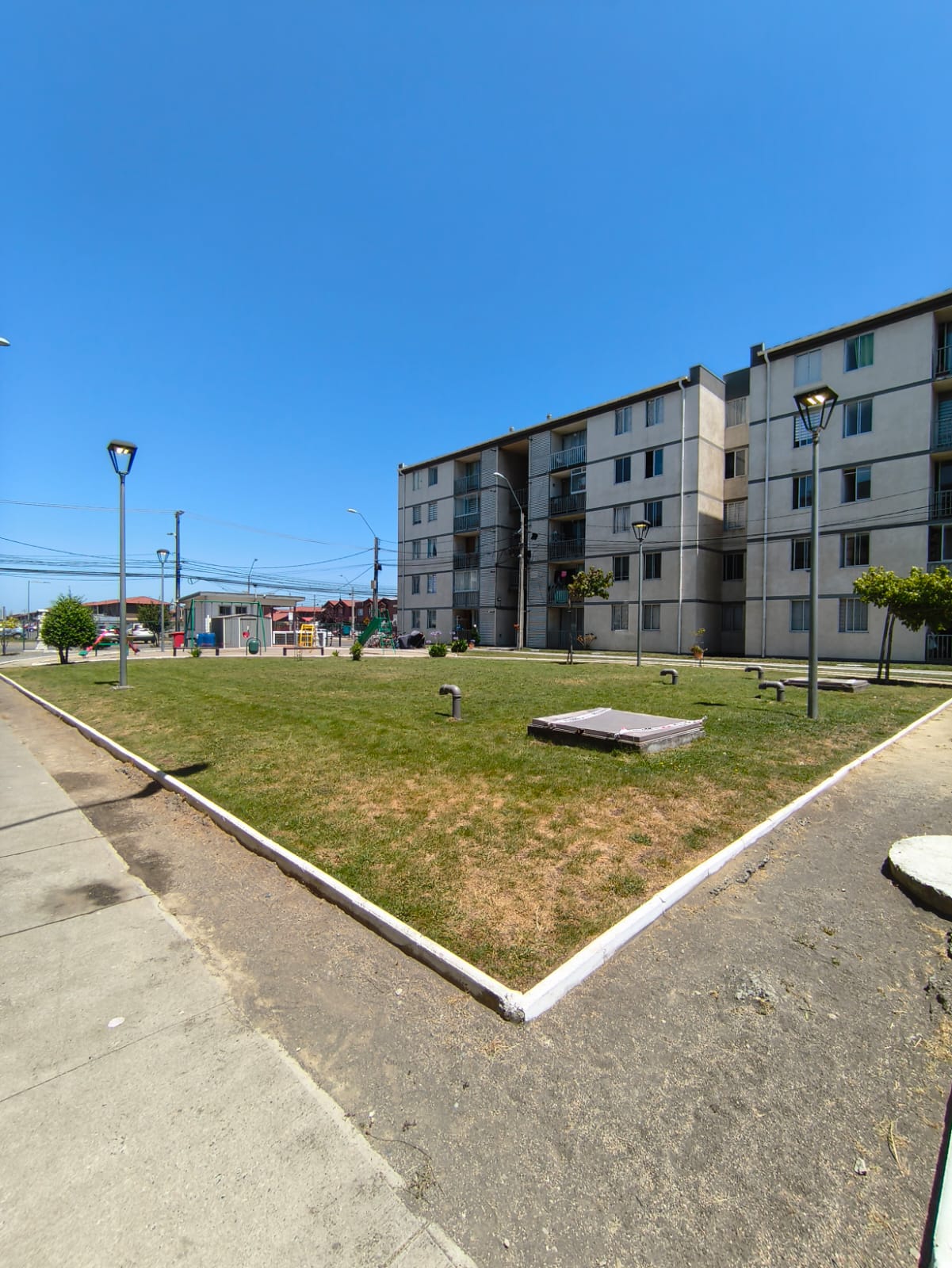 El condominio cuenta con áreas verdes, conserjería, juegos infantiles.