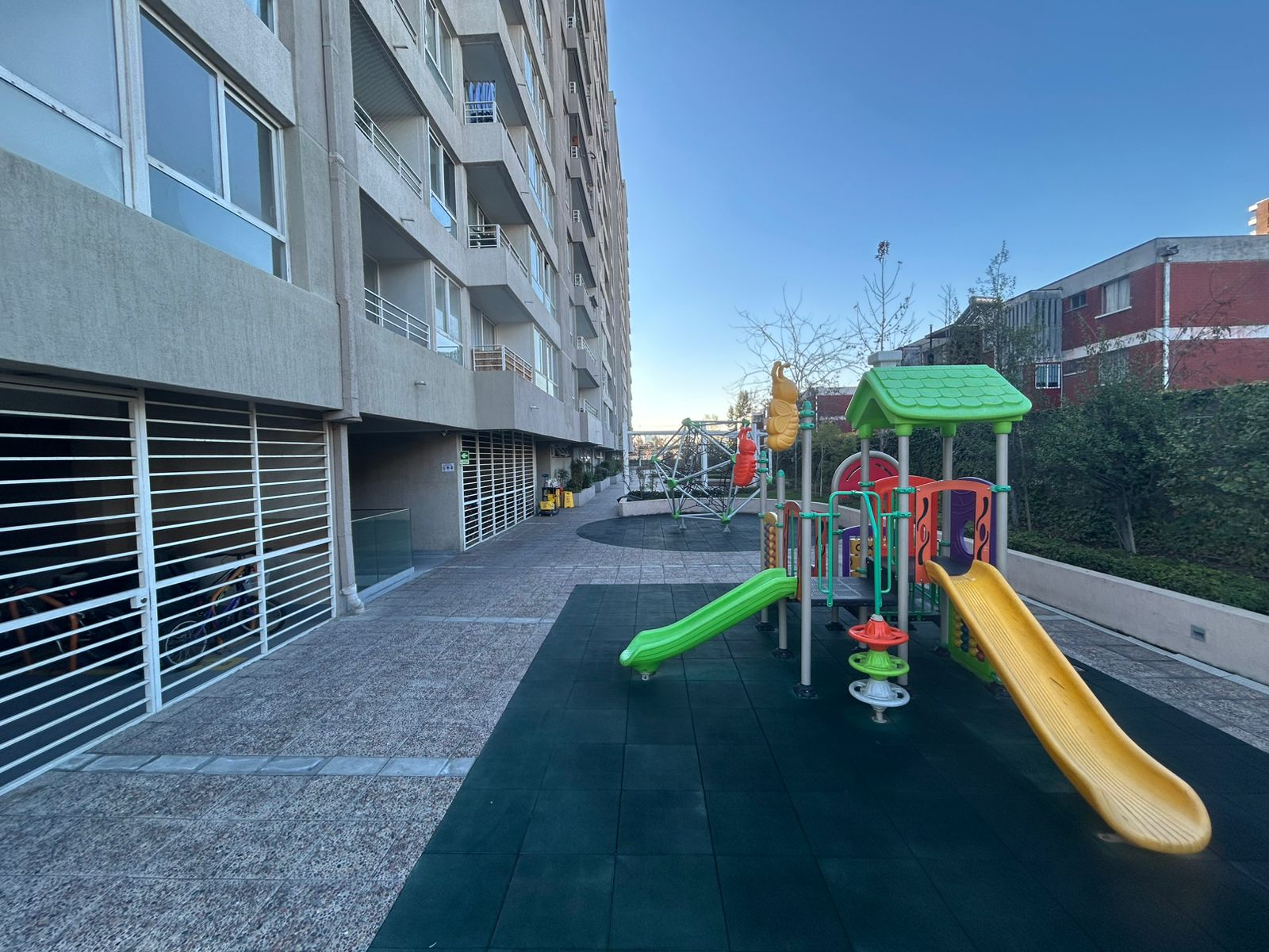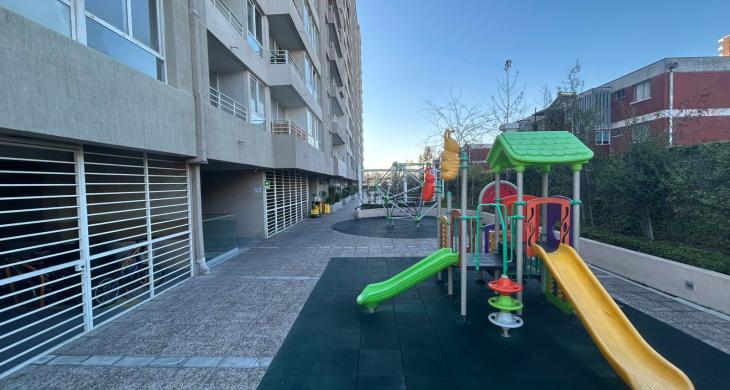 Edificio cuenta con áreas comunes como Seguridad 24/7, Quinchos, Salones Comunes, GyM, Bicicleteros, Piscina, Lavandería, Estacionamiento de visitas, Barrios residencial, cercano a comercios, colegios, locomoción colectiva entre otras