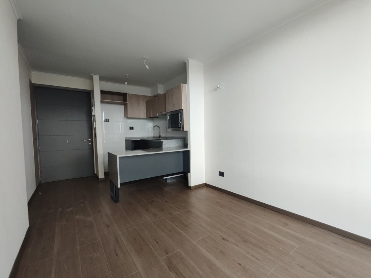 Departamento cuenta con cortinas, focos, soporte para Tv, balcón amplio, conexión a lavadora.