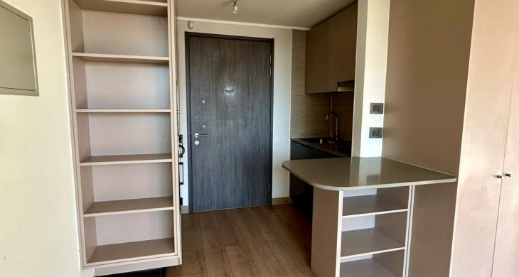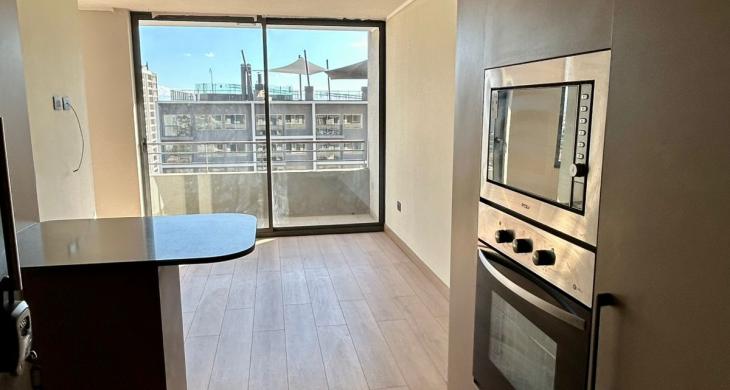 Se Arrienda Depto. de 1D1B, ubicado en Piso 17, con balcón. Orientación Sur, Depto. cuenta con cocina encimera, horno, campana, microondas y refrigerador.
