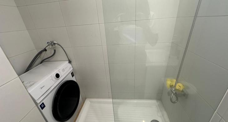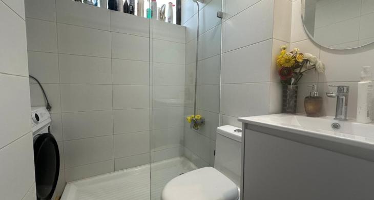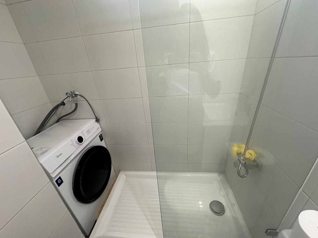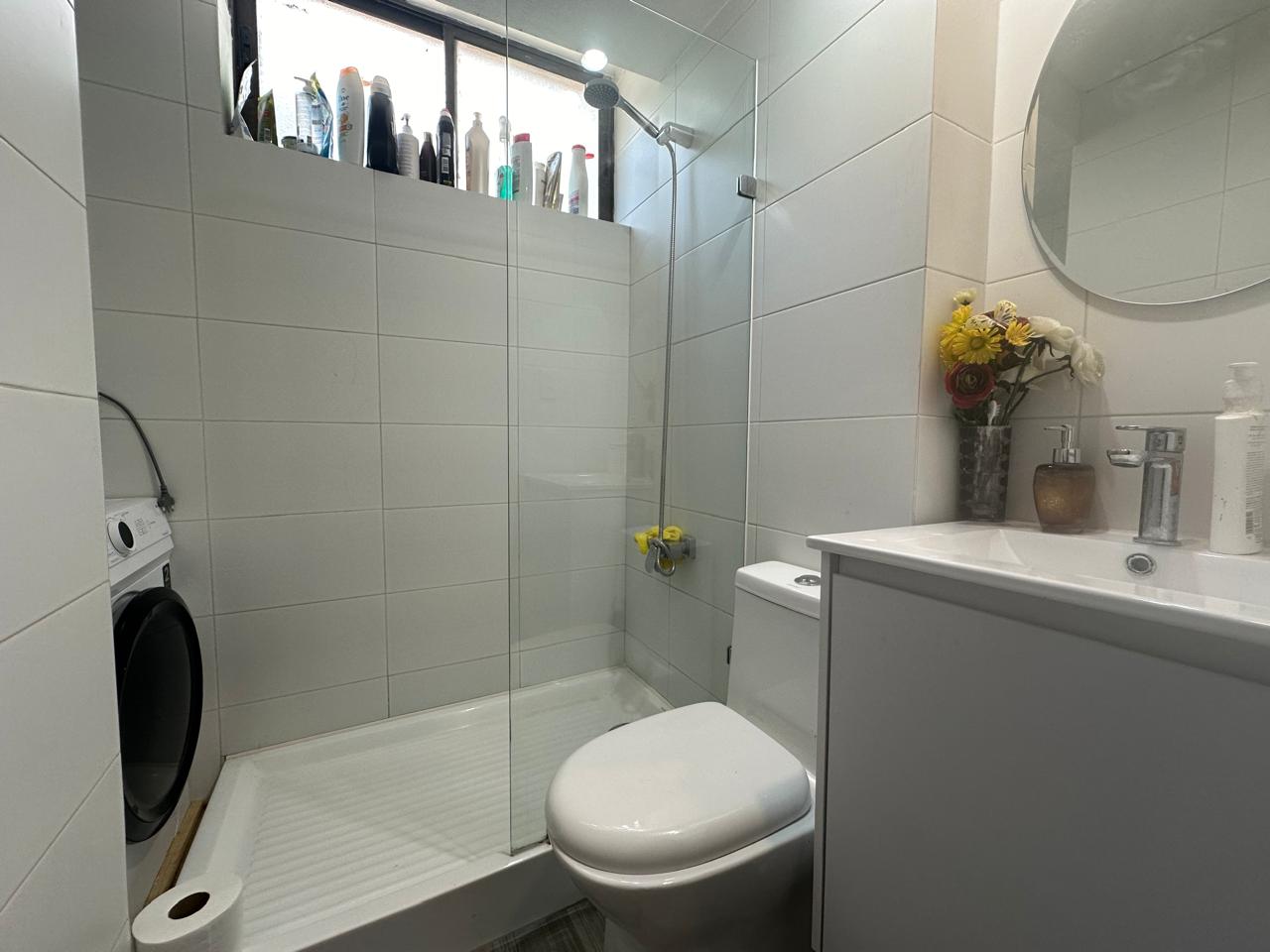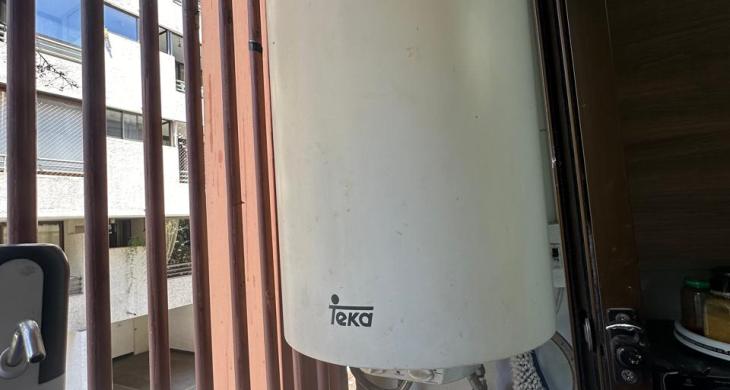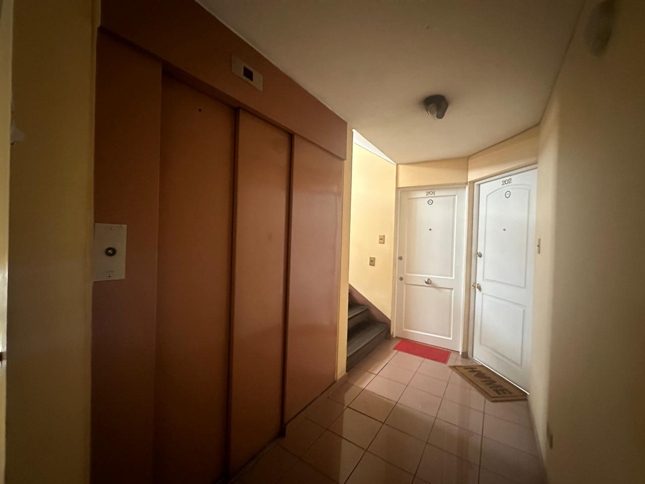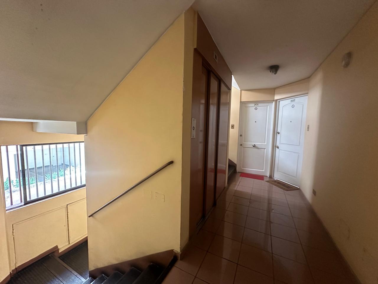 2 dormitorios, 1 bano, 2 puestos de estacionamiento, 1 bodega. Cocina separada full electric. Agua caliente con termo electrico.