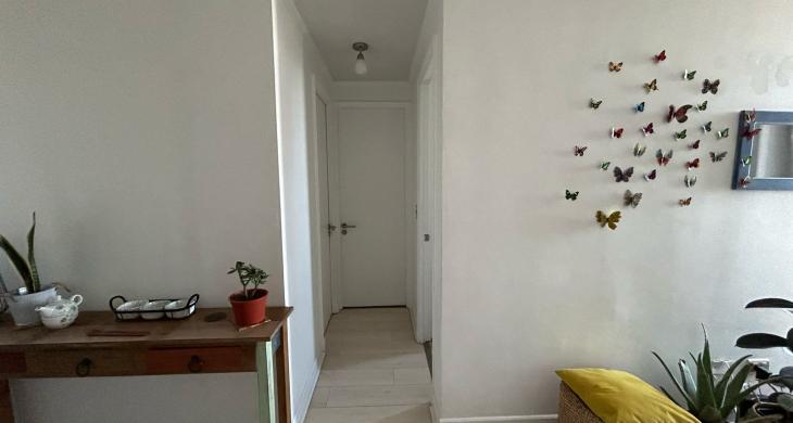 La propiedad, situada en una posición privilegiada dentro de la torre, ofrece una perspectiva despejada y una luminosidad natural que realza cada uno de sus ambientes interiores. Con una superficie de 55 metros cuadrados construidos, el diseño ha sido optimizado para maximizar el espacio y la comodidad de sus habitantes. El programa habitacional incluye dos dormitorios amplios, destacando la habitación principal en suite que garantiza privacidad y confort, complementada por un segundo baño completo perfectamente equipado para visitas o uso compartido. La zona social de living-comedor se integra de manera fluida hacia una acogedora terraza de 3 metros cuadrados, un espacio ideal para el descanso y la contemplación del entorno urbano.