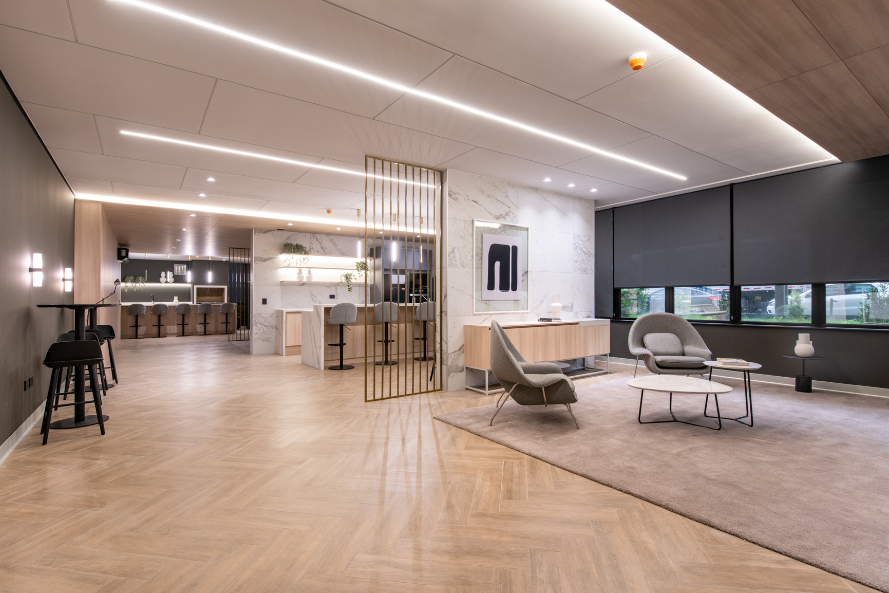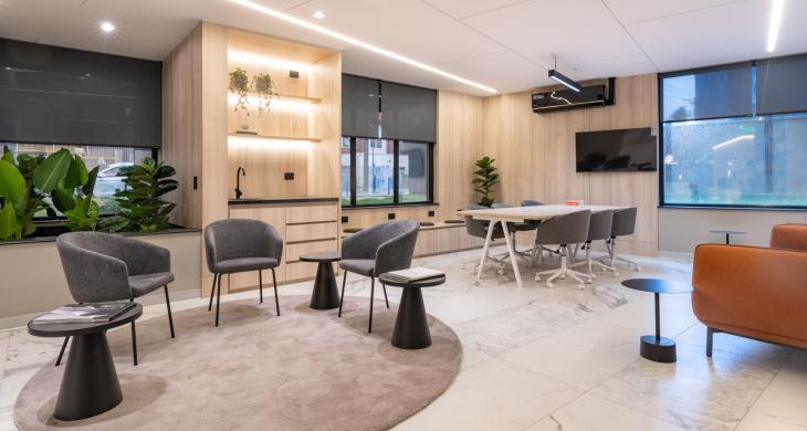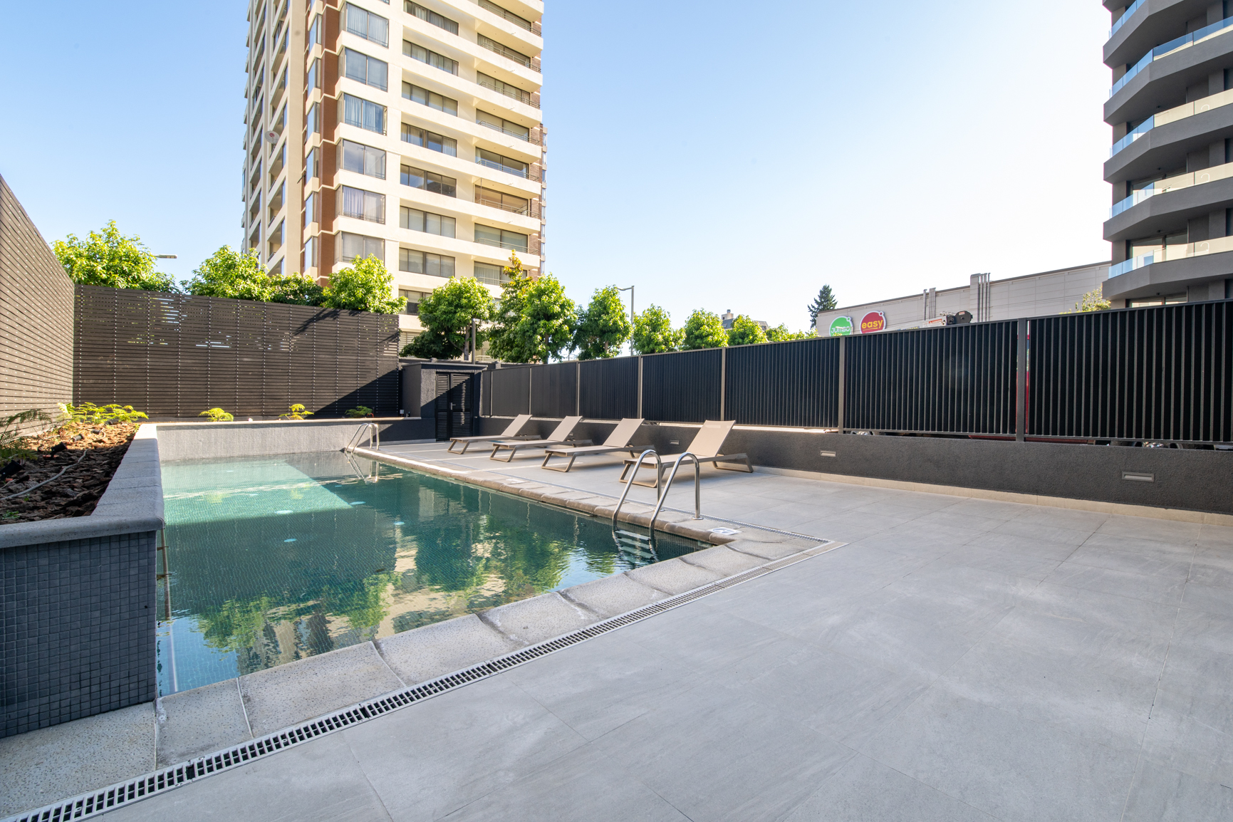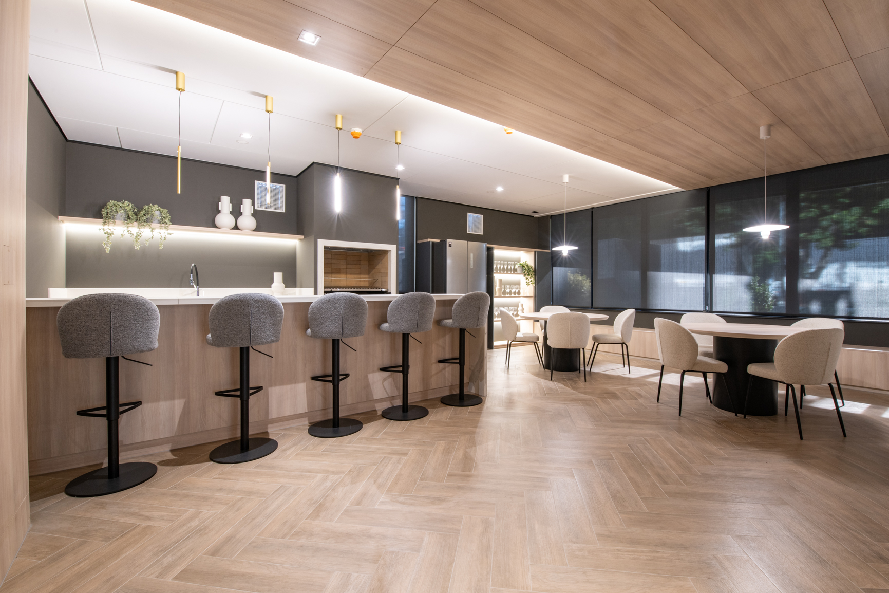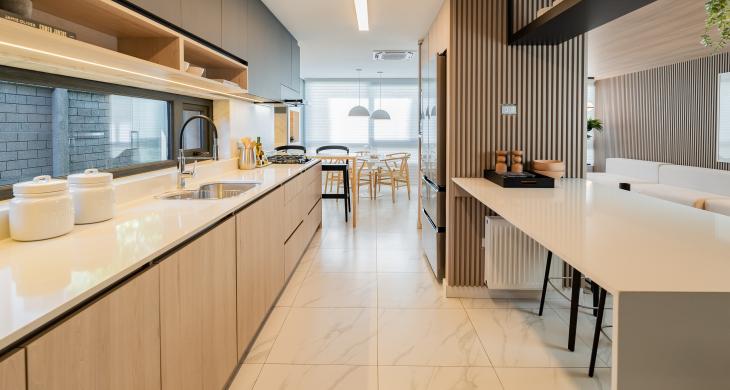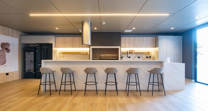 Características y terminaciones: sistema flex en departamentos (cocina abierta y cerrada), diseño de mobiliario en departamentos, grill barbecue integrado (según modelo que corresponda), espejo dfrost baños en suite y antepecho de cristal templado en terraza.