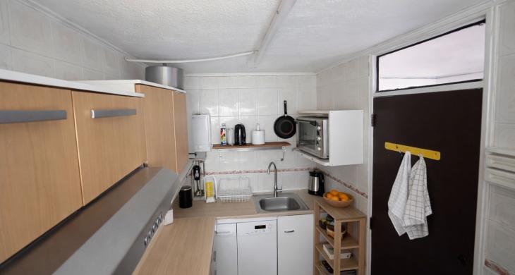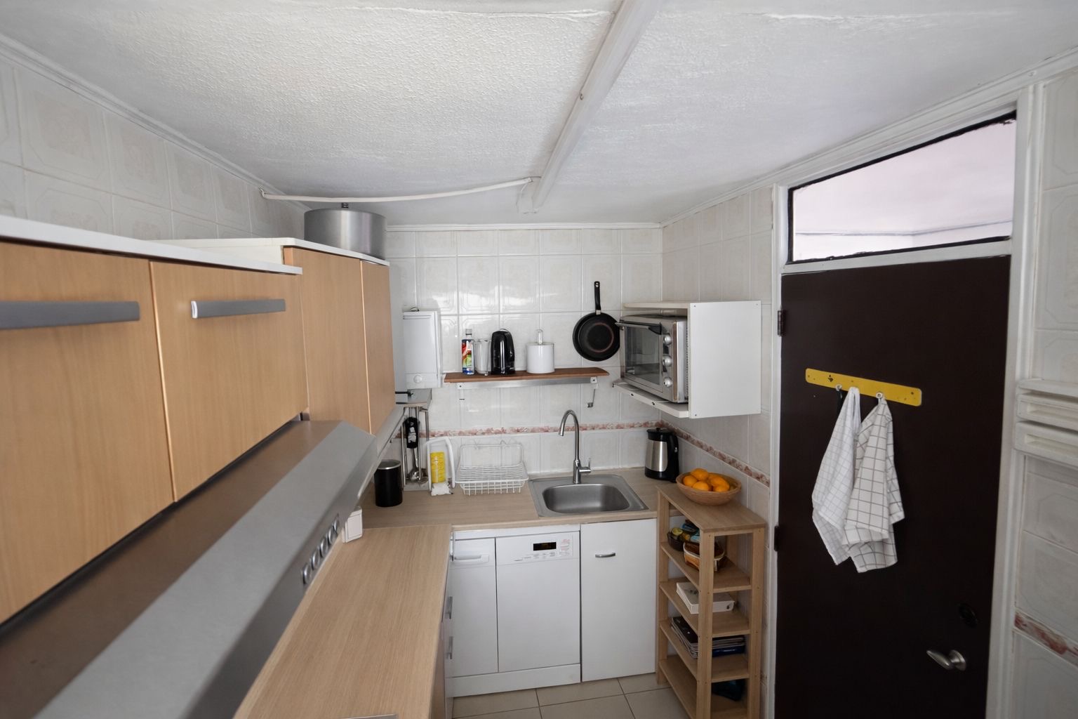 Cocina tradicional, larga, con muebles aéreos