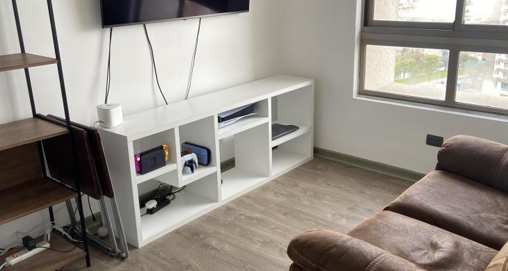 La distribución interna contempla tres amplios dormitorios, diseñados para garantizar el descanso y la privacidad. La habitación principal cuenta con baño en suite, proporcionando un refugio personal de alto estándar. En total, la propiedad dispone de dos baños completos con terminaciones modernas. El área social se integra de manera elegante con una terraza de 5 metros cuadrados, perfecta para disfrutar del entorno urbano desde una perspectiva elevada en uno de los pisos más altos del edificio, lo que asegura tranquilidad y una vista despejada hacia los alrededores de la Ciudad Jardín.