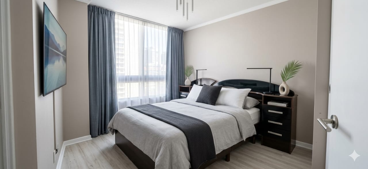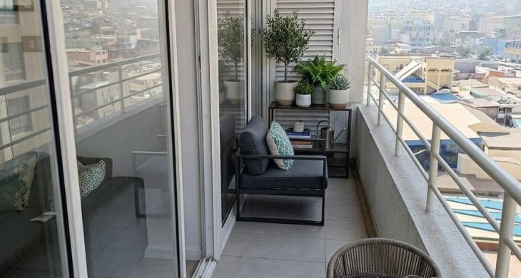 Este departamento en venta, situado en el cuarto piso de un moderno edificio de veintiún niveles construido en el año 2019, cuenta con una superficie total de 52 metros cuadrados eficientemente distribuidos para maximizar cada espacio habitable. La configuración interior ofrece dos dormitorios amplios, destacando la habitación principal en suite para brindar la máxima privacidad y confort, complementada por un segundo baño completo con terminaciones de excelente calidad. La zona social se conecta armoniosamente con una terraza de 4 metros cuadrados, espacio ideal para disfrutar de la ventilación natural y la dinámica atmósfera del sector centro de la ciudad.