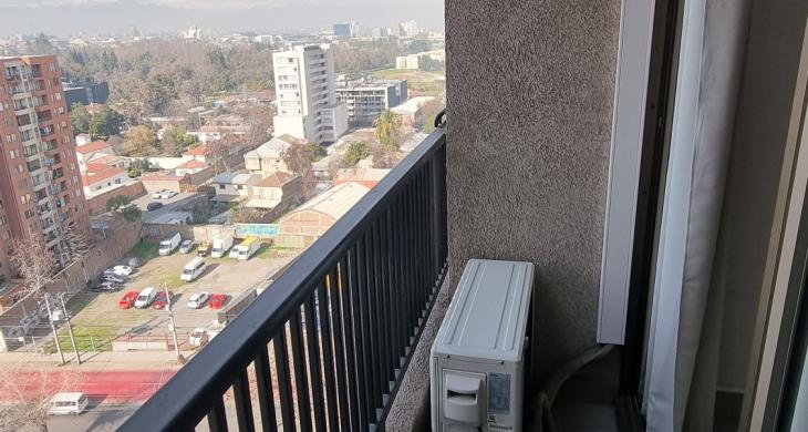 Hermoso y moderno departamento a pasos de estación de Metro Gruta de Lourdes, un baño y un dormitorio, cocina americana plenamente equipada y habilitada, terraza, aire acondicionado, bodega, único dueño y excelente estado de la propiedad.