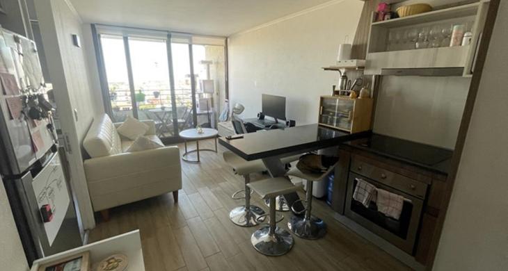 Excelente departamentoen un décimo piso, para vivir e inversión. con entrada a sala living y comedor muy acogedor y luminoso, salida a terraza de buen tamaño.