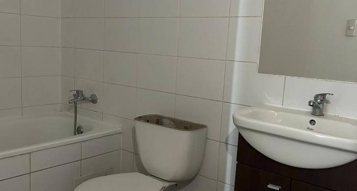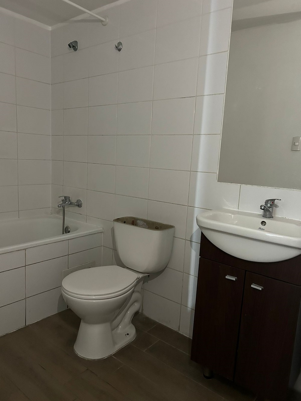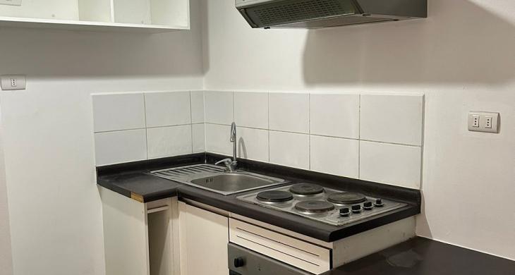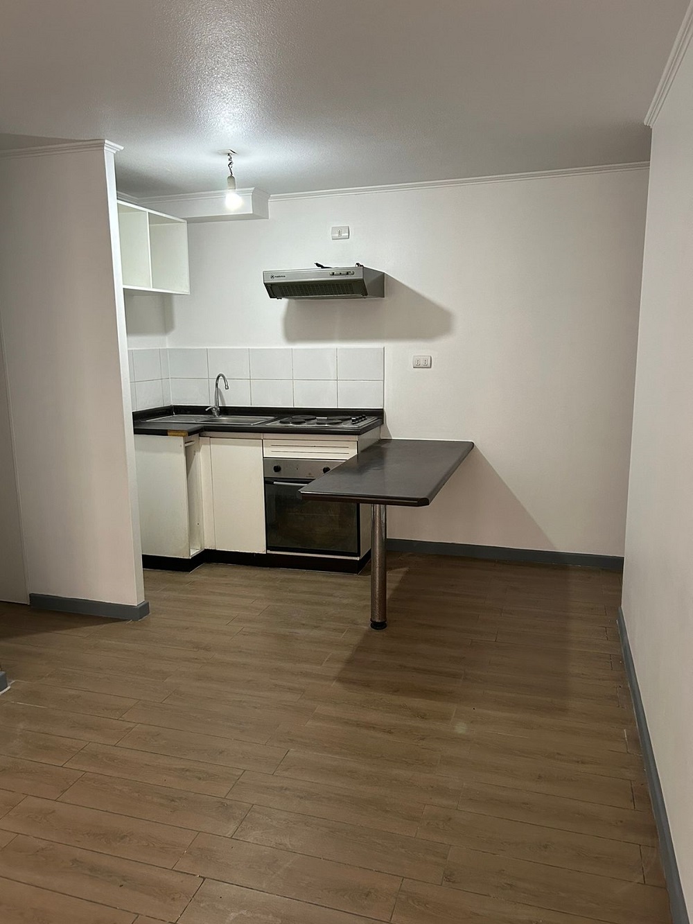 Consta de living comedor con salida a pequeña terraza, cocina americana amoblada y equipada con encimera a gas para cuatro platos y horno eléctrico.
