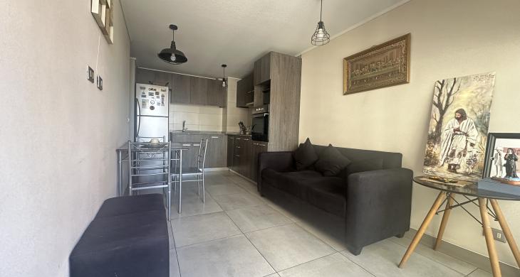 Esta sofisticada unidad, construida en el año 2019, se presenta como una oportunidad única para quienes buscan calidad de vida y funcionalidad en un entorno urbano consolidado. Con una superficie total de 46 metros cuadrados, el inmueble distribuye eficientemente sus 43 metros cuadrados construidos, sumando una agradable terraza de 3 metros cuadrados ideal para disfrutar del aire libre con una perspectiva privilegiada de la ciudad. El programa arquitectónico contempla dos dormitorios espaciosos con closet y un baño completo con terminaciones contemporáneas, espacio para home office, conexión para lavadora y una cocina integrada al living comedor lo que hace un lugar acogedor.