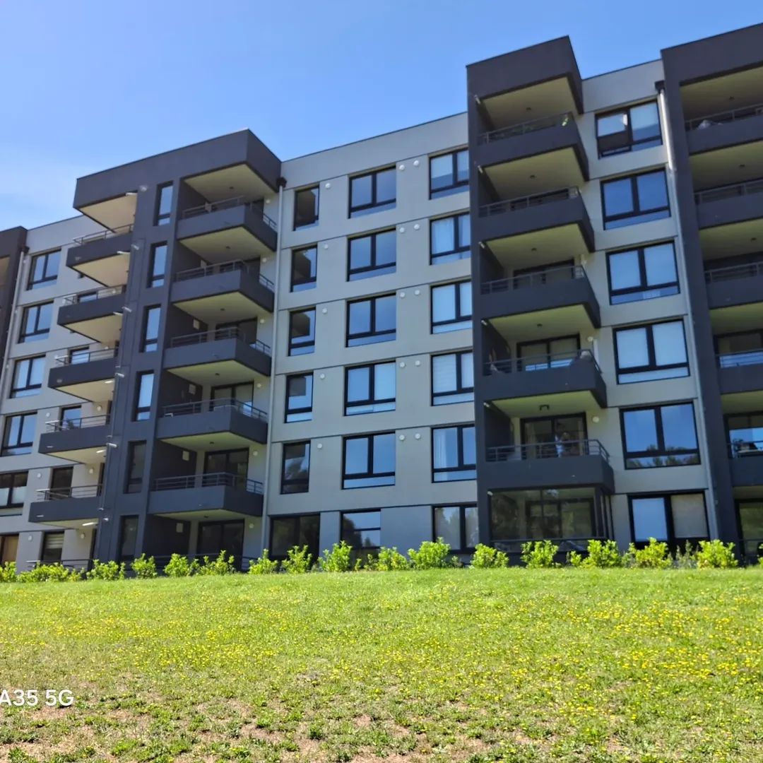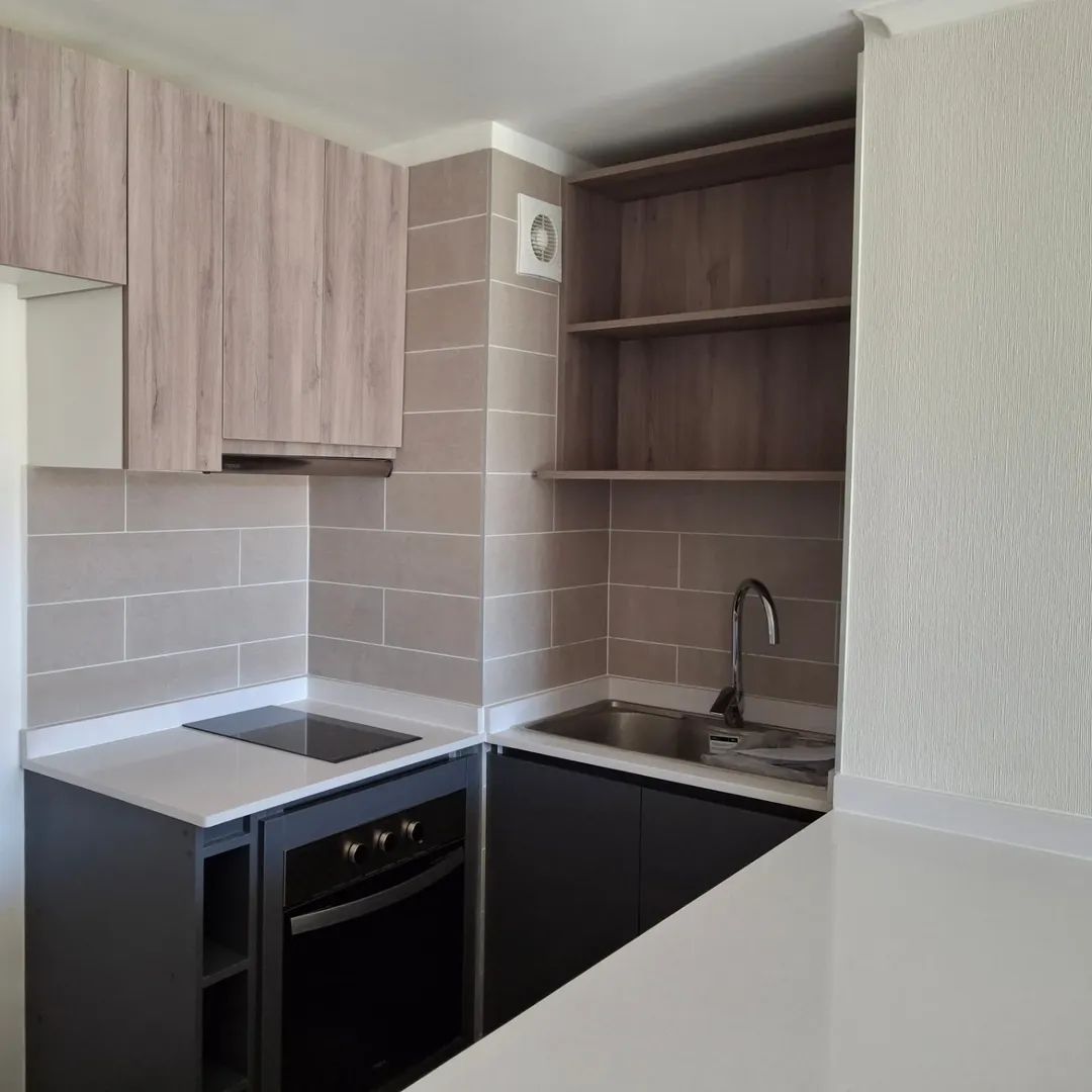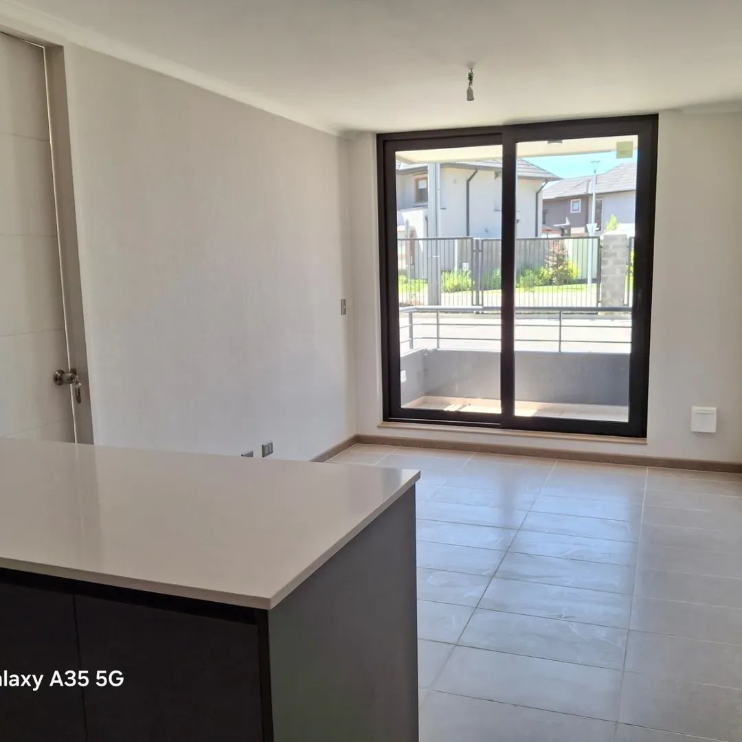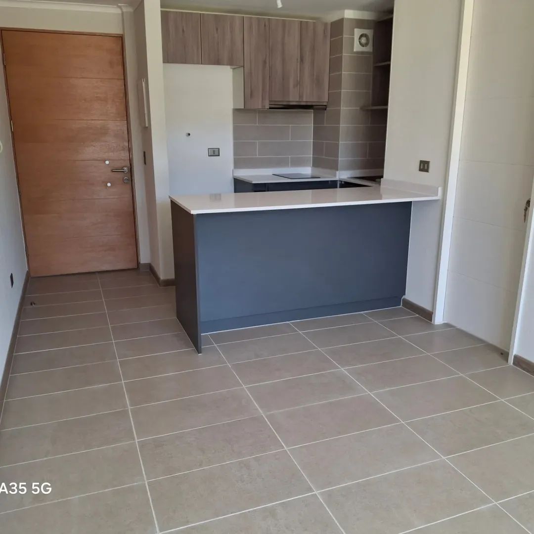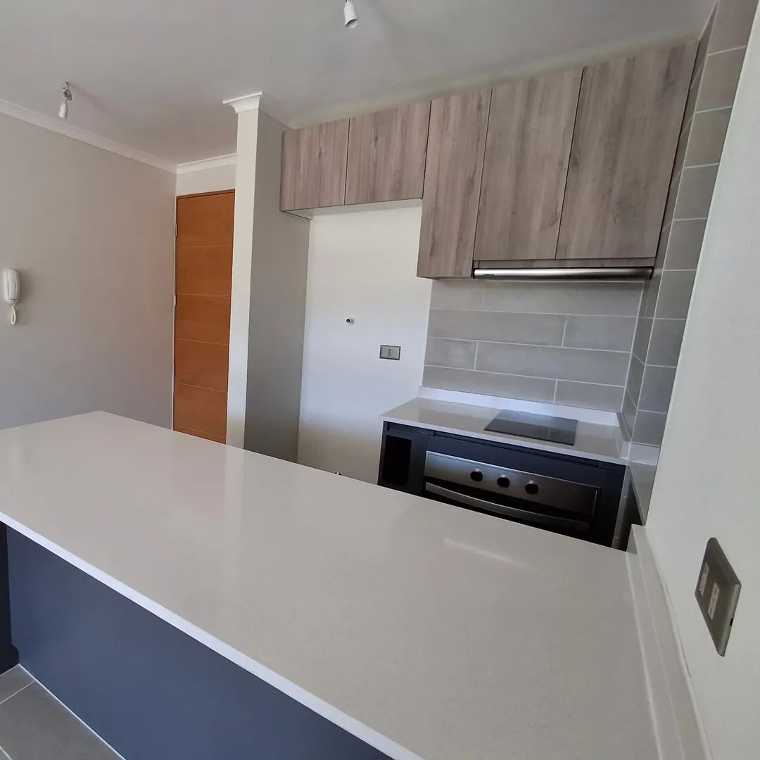 Se Vende Excelente departamento en exclusivo Condominio sector norte de Los Angeles, Borde Laguna, Primer Piso, de 1 dormitorio en suite, cocina equipada con horno y encimera, campana